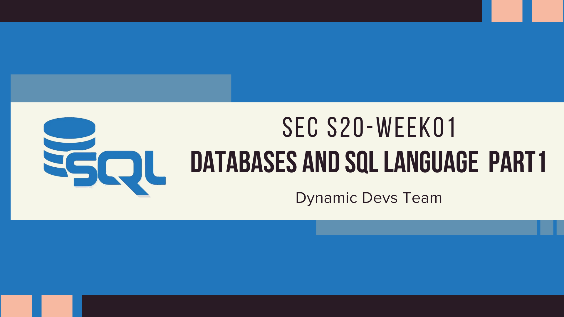 Use the following title: SEC S20W1 || Databases and SQL language - Part 1