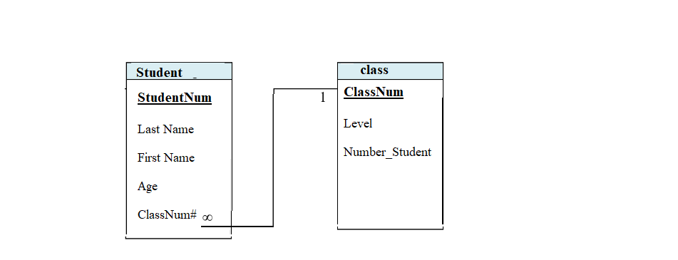 Case of the "Student" and "Class" tables: