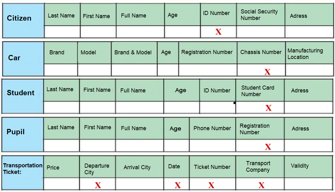 a) In the following tables, check the box that allows for unique identification of the entity.