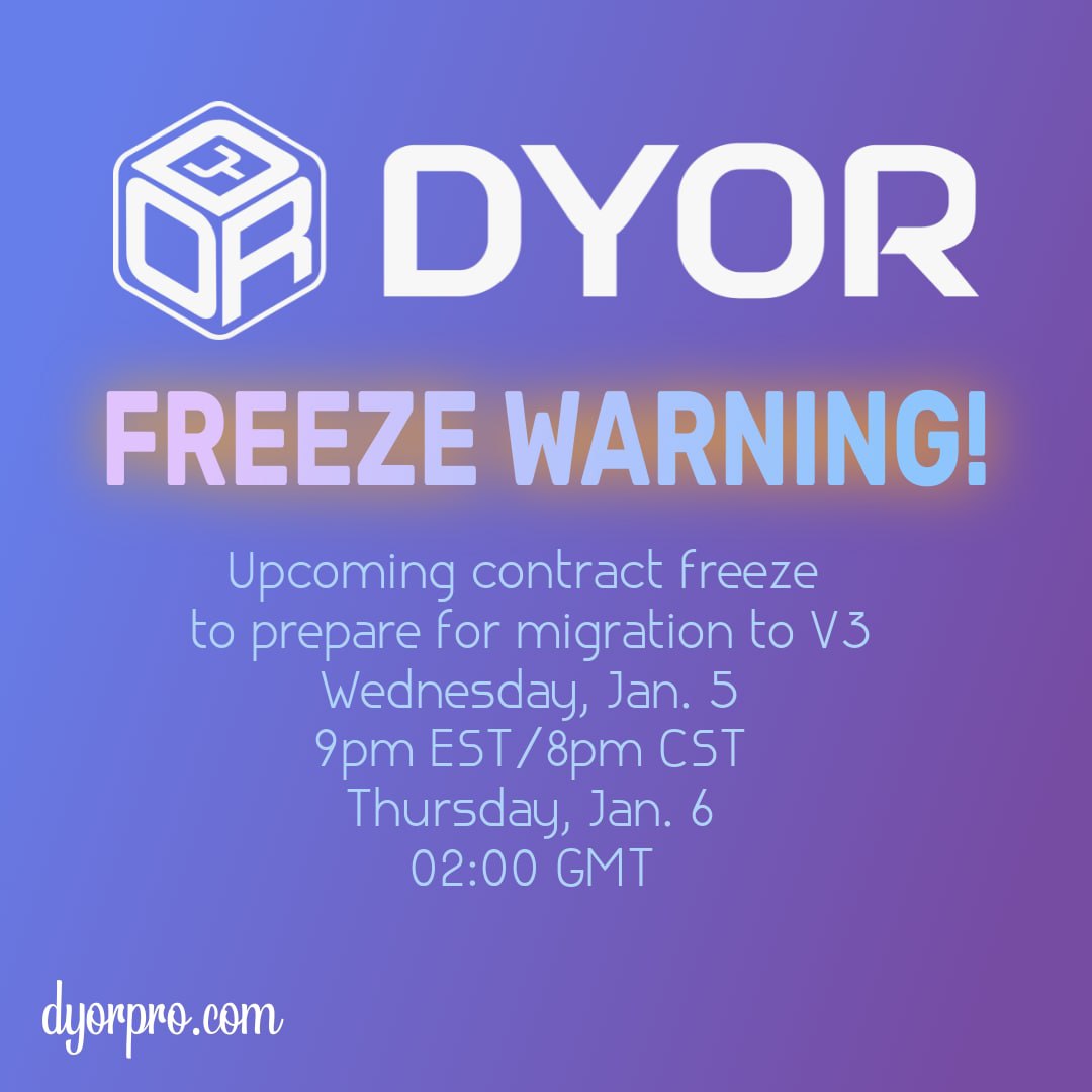UPDATE! DYOR V2 is now frozen! Please be patient as we release more migration details!!!