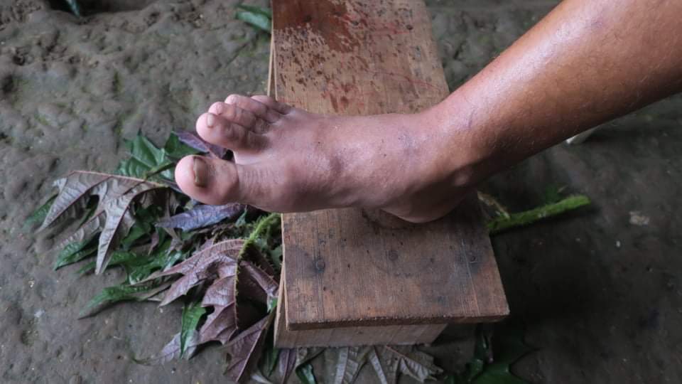 Jarda měl též možnost vyzkoušet medicinu, i když míň příjemnou než já. Něco jako místní kopřiva, obrovské ostny. To by nevadilo, kdyby vás tím nechtěli přes tu nohu šlehat.