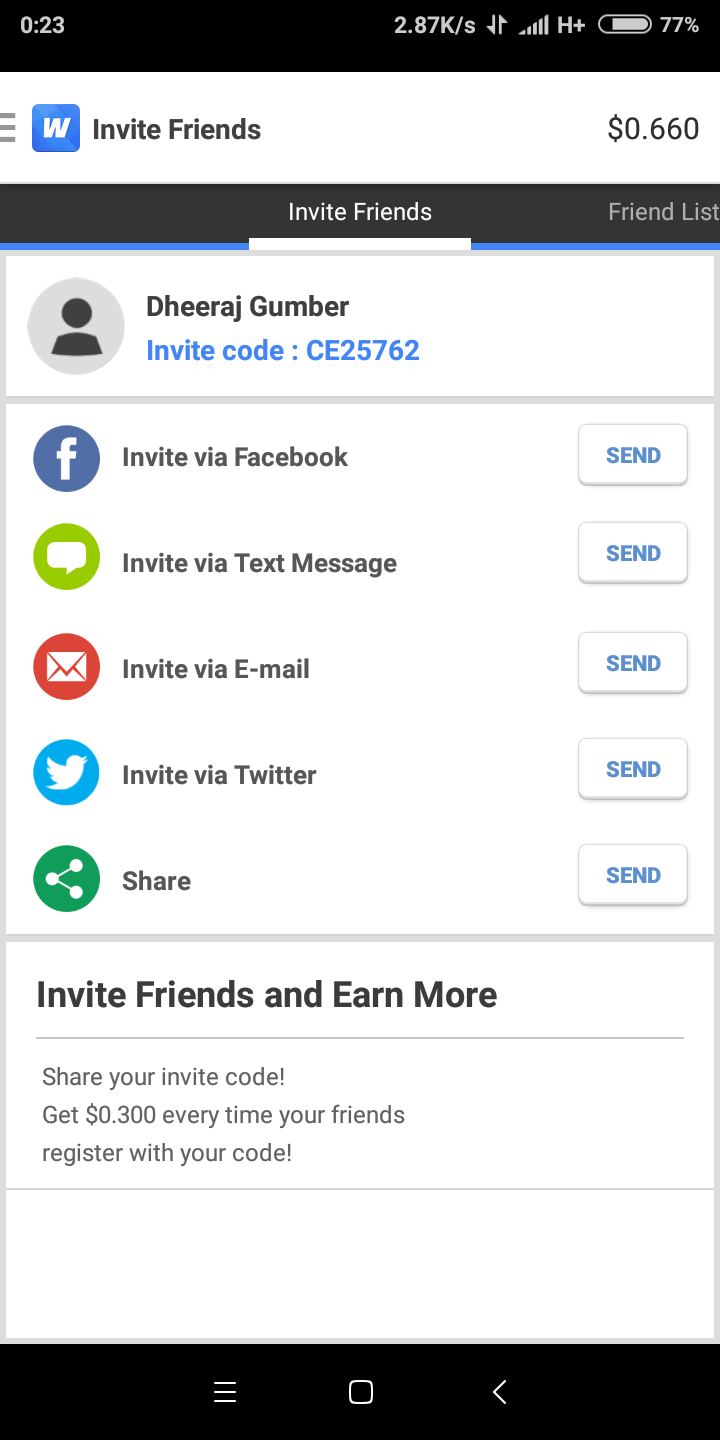 Now what can we do when you install this app in your smartphone then you sign up with Facebook and it say a invitation code put my code and you earn 0.30$ easily