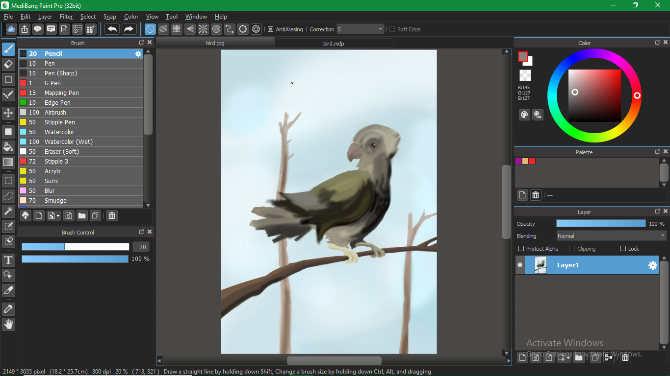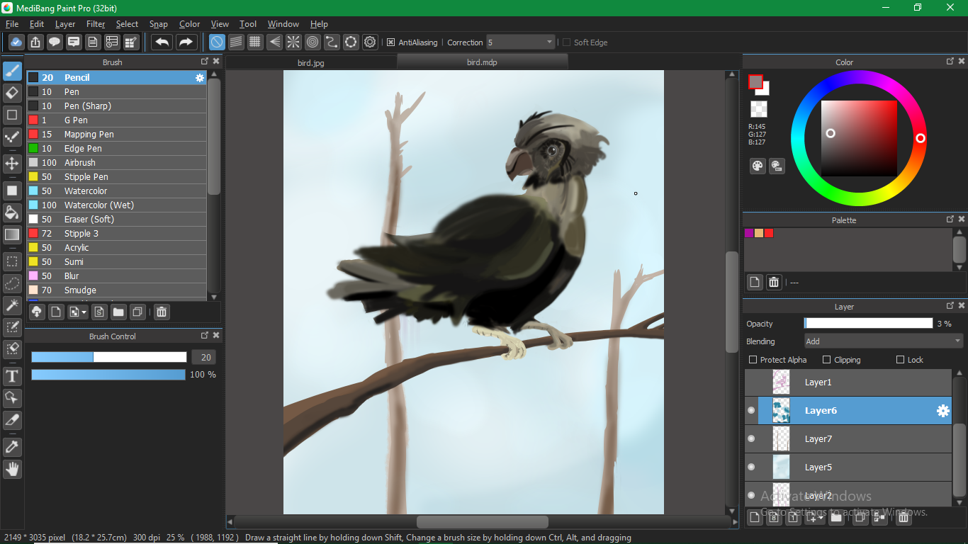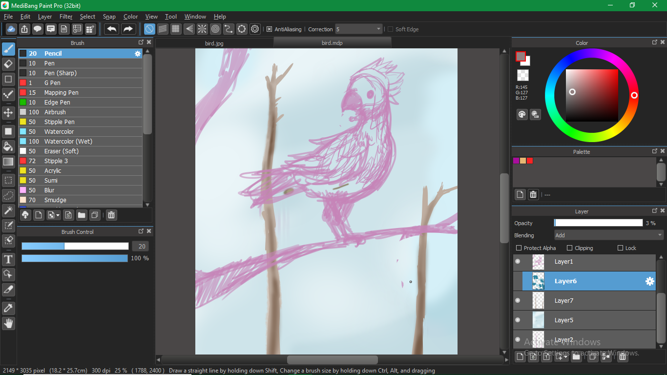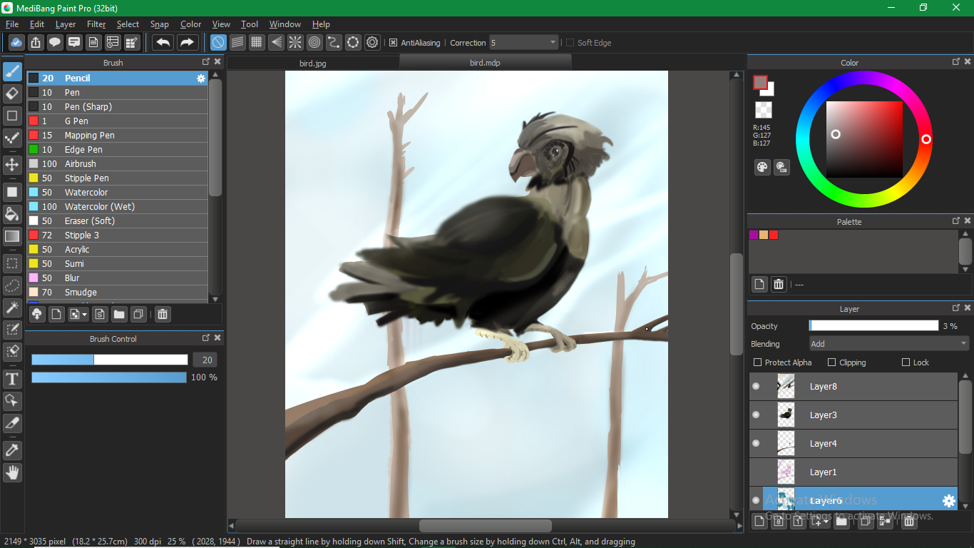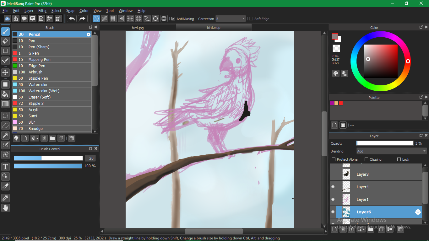 Then I painted it for around 4 hours. When the bird took shape I hid the sketch layer.