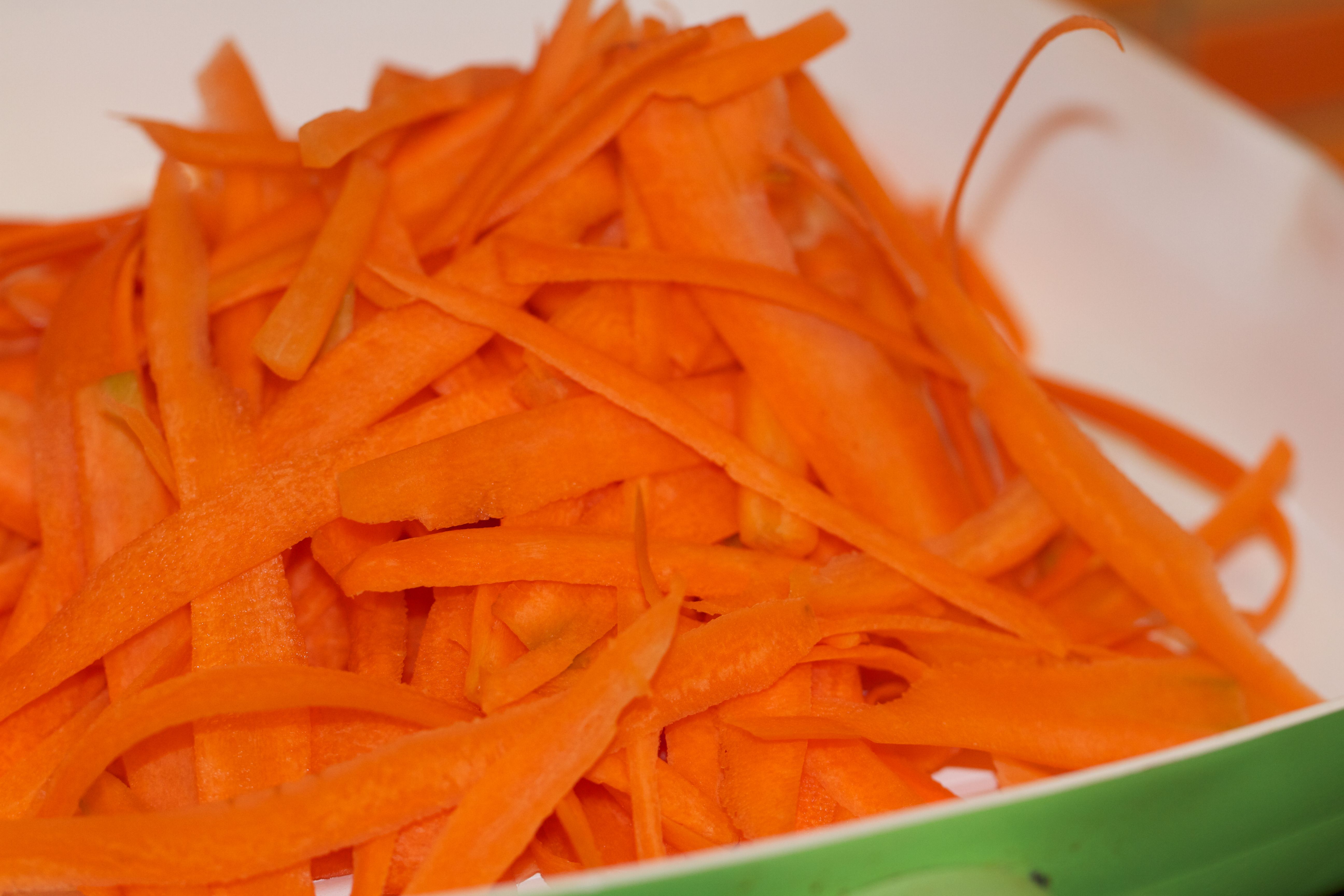 A few drops of olives I put the vegetables in a teflon pan ... first the carrots because the harder. After ten minutes I add the zucchini, which does not take much time / about 5 minutes together / salt, freshly ground black peas and is finished ...