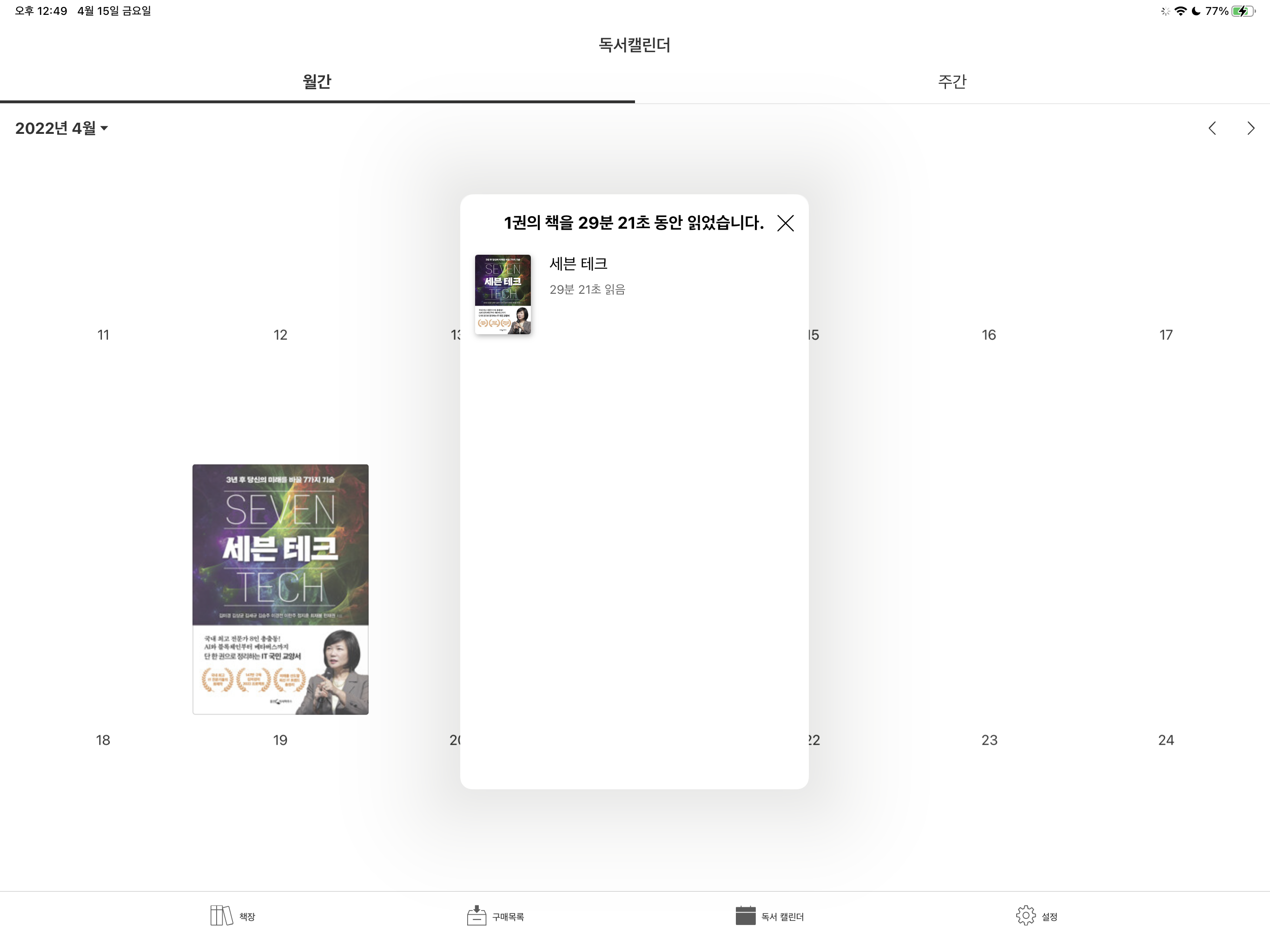 나태해진 나에게 반성중…steemCreated with Sketch.lena8988 (51)in #ebookreader • 4 years ago 요즘 게으름 병이 도져서 아무것도 안했더니… 세상에 요즘 ebook어플은 내가 독서를 언제 얼마나 했는지도 나오네요. 근 3주간 30분 밖에 안 읽었다니… 반성 중… 오늘은 독서날로 하는 걸로ㅎㅎ😂 #ebook #reading #book