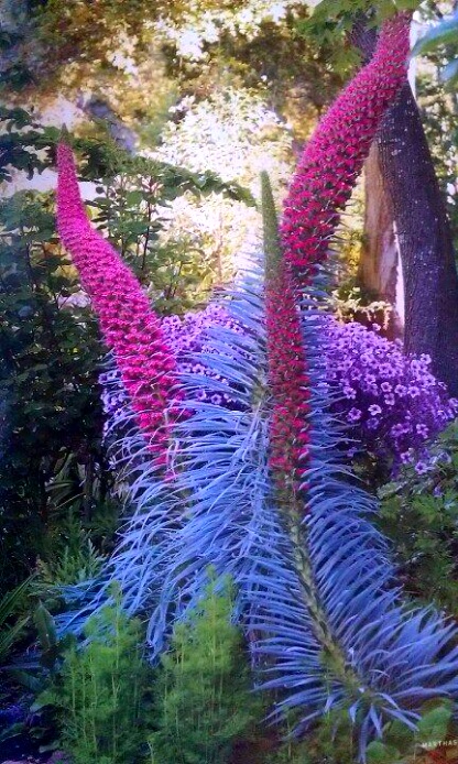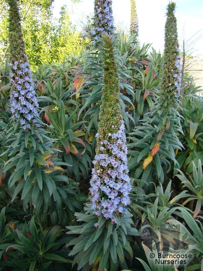Beautiful plant, my friend, a truly dramatic garden plant, a close relative of borage, it produces the most spectacular tall flower spikes seemingly from nowhere in summer. Despite it's common name of 'Pride of Madeira', it is hardy in the UK down to -5C or so, particularly where it is drier in winter. It is biennial, so needs one cold winter after germination to flower - so these plants will flower in their first year and beyond.