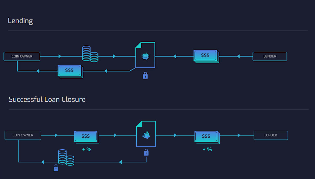 Loan closure, the coin owner pays a certain number of fiat money (include interest) as same as loan agreement contract. the application process by smart contract before then forwarded to the lenders. if that loan closure application is true and fit. then the lender will receive the money back and the coin owner will gain their crypto asset back. it runs simple and gives astonishing ease to both of parties.