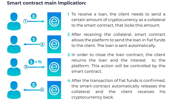 eCOINOMIC.net give easy access to borrowers gain fiat money loan by using their cryptocurrency assets as a collateral asset. The cryptocurrencies holder no needed to sell their crypto asset. just make those assets as the collateral asset with certain contract time as payment due that borrower has to pay (30 days )