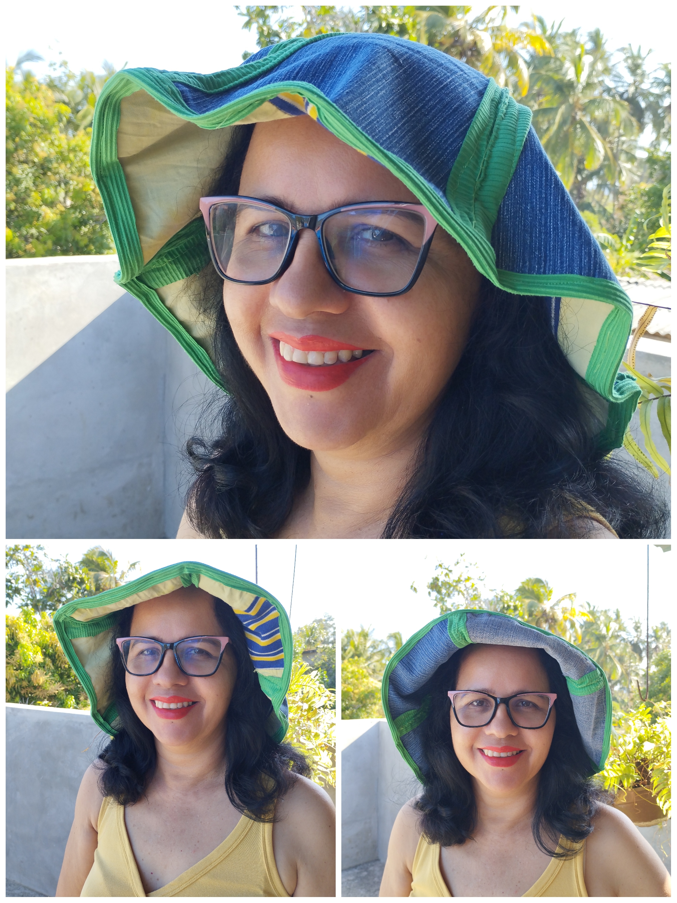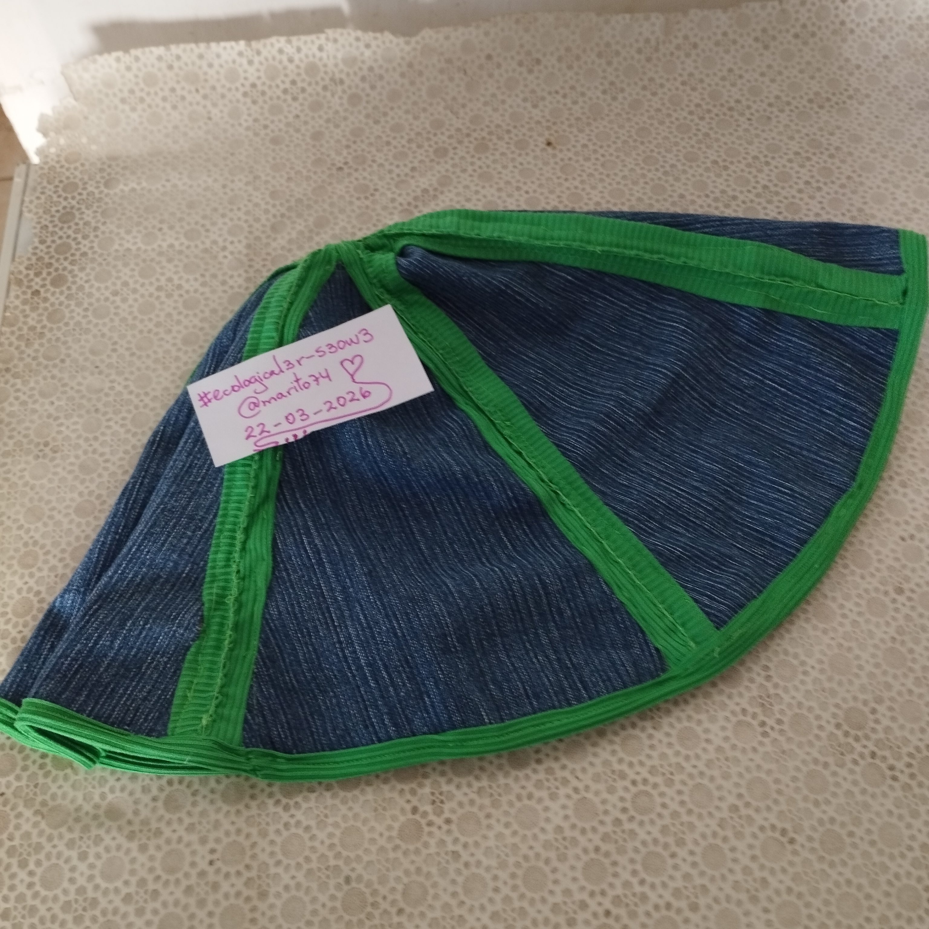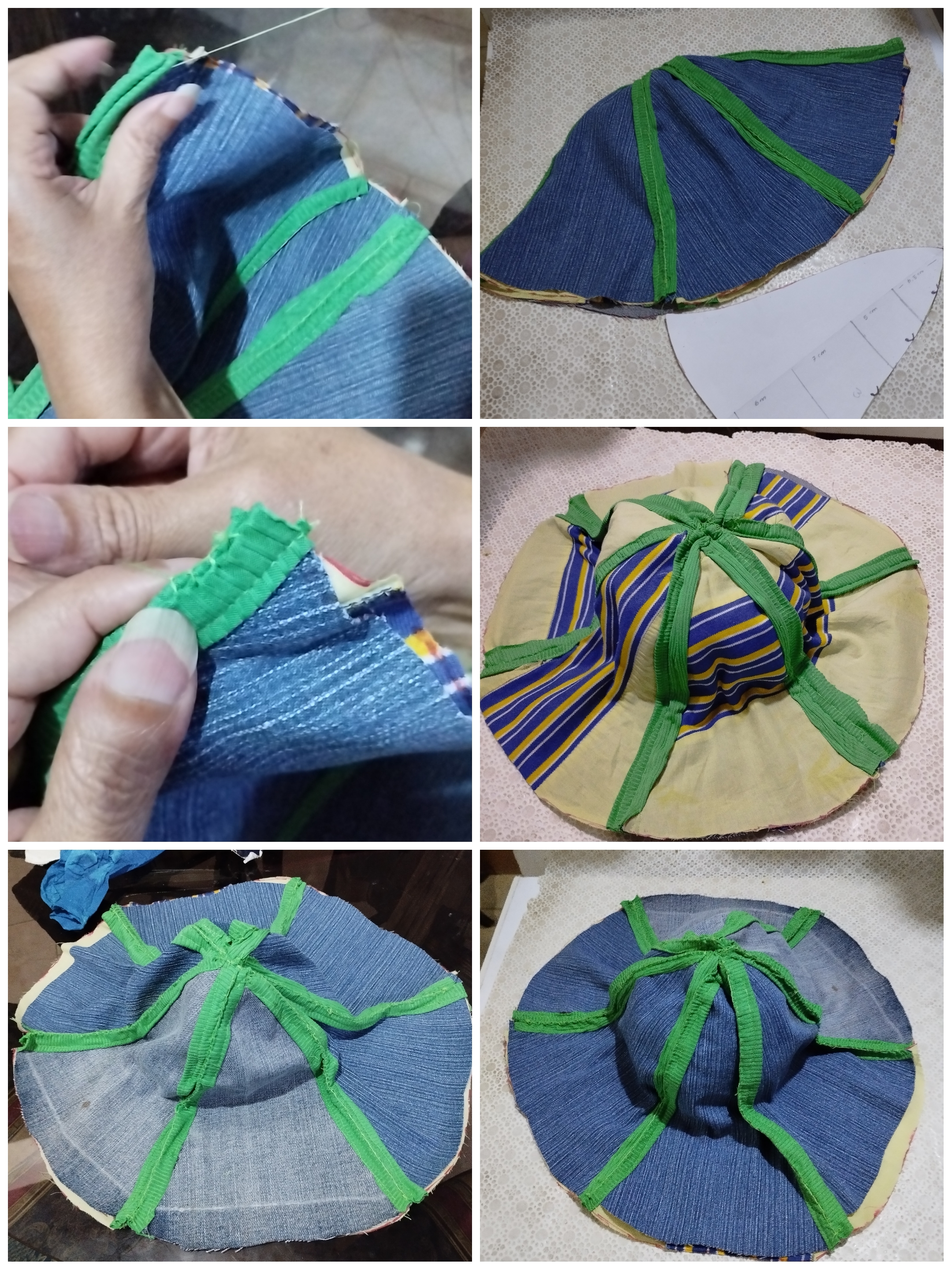 Déjeme decirle que su sombrero quedó bien lindo; ese color verde con el azul de la tela de jean queda espectacular.