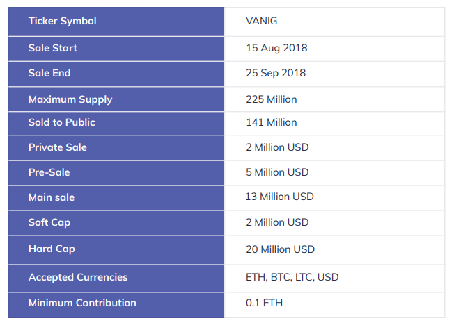 Vanig tokens will be used to make real-time money transactions and money transfers possible, something which is not possible today at any major e-commerce player. Sellers and buyers will also be able to earn VANIG tokens for listing, buying, performing various activities on the platform. People can purchase VANIG tokens during the Pre-sale or main token sale and help create the e-commerce platform of the future.