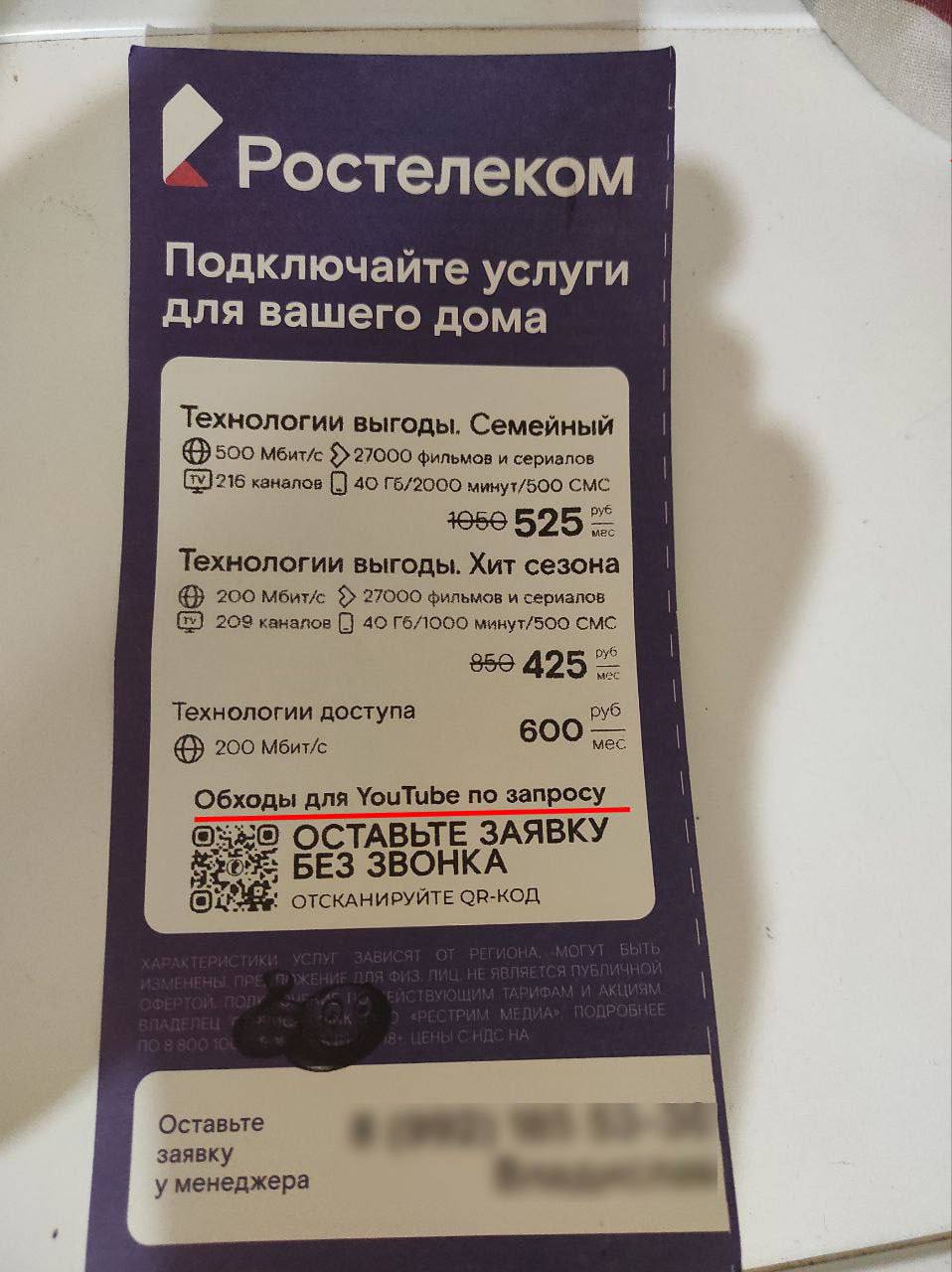 У Ростелеком ввел новый сервис: за вознаграждение клиентам помогутania настроить обход ограничений YouTube, о существовании которых Роскомнадзор запретил распространять информацию.