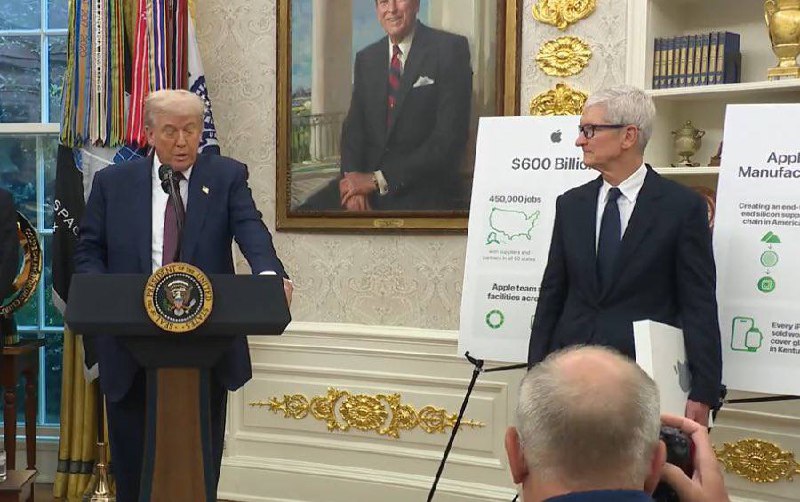 Главный исполнительный директор Apple Тим Кук во время визита в офис президента Дональда Трампа сообщил, что корпорация вложит 600 миллиардов долларов в экономику Соединённых Штатов.
