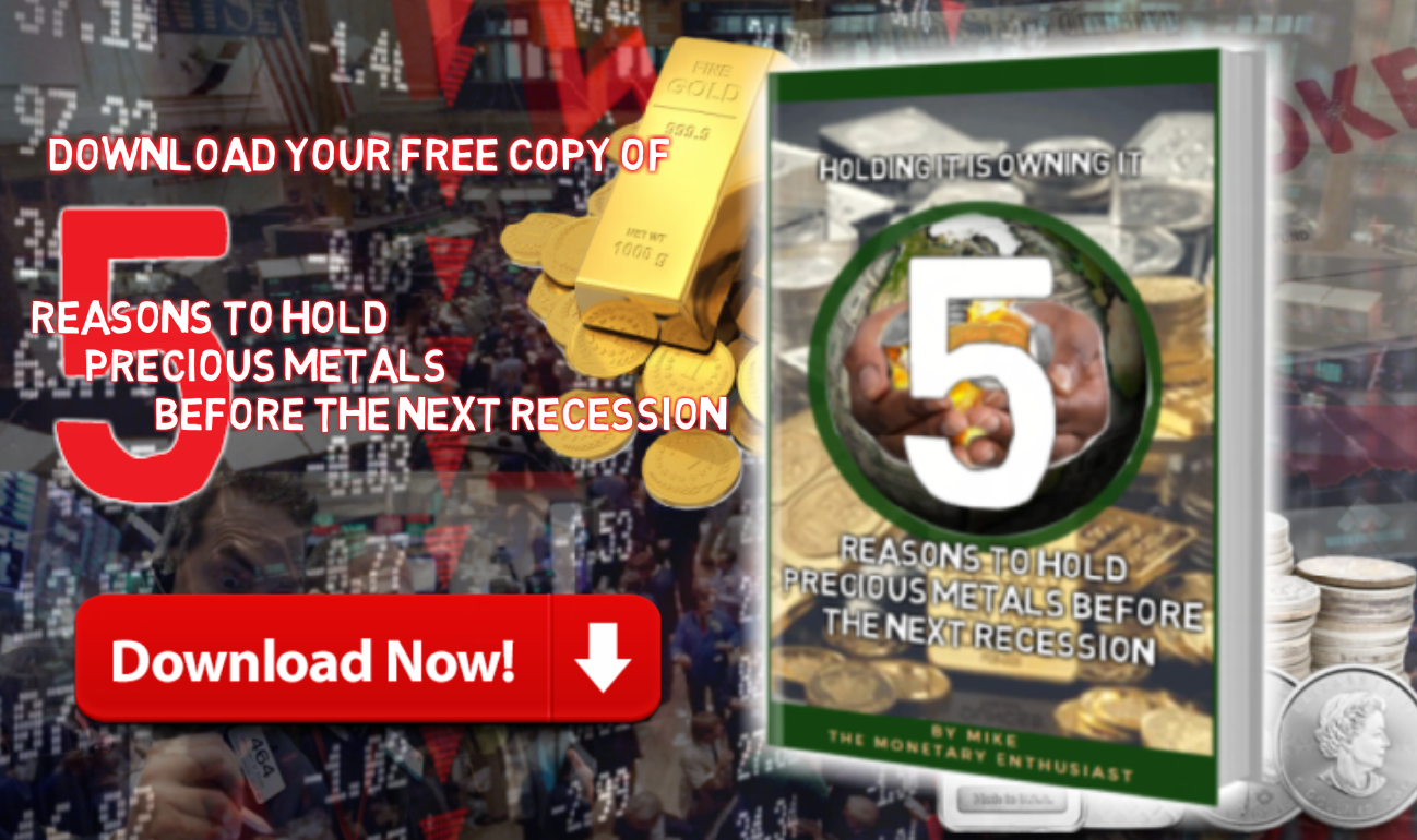 The next recession is around the corner and a lot of people are unaware of why this time it will be a lot worse than the Great Recession of 2007-2013. In this new eBook, "5 Reasons To Hold Precious Metals Before the Next Recession ", I share my thoughts on how being prepared ahead of time will help those that hold tangible wealth in their hands through the next crisis.