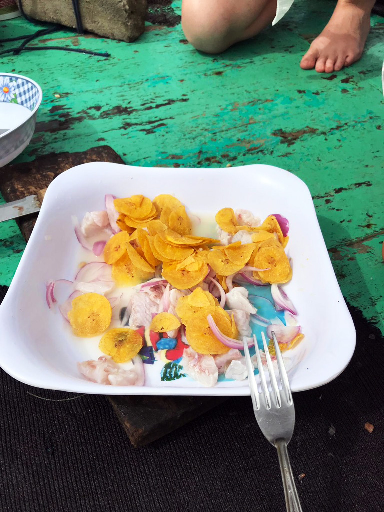 The next part of the trip was what we had all been waiting for, our freshly caught fish prepared and into the freshest Ceviche we had ever experienced. Ceviche, considered the national dish of Peru, is fresh fish, cured using the citric acid of limes with onions, garlic and chifles (fried plantains). The Ceviche was fantastic and certainly a highlight of my time here in Peru. We spent the final hour sitting and chatting, enjoying the Ceviche before we made our way back to the pier. On our way back we took a closer look at one of the oil rigs, Tulio telling us about how the Sea Lions make their way onto the rig, jumping up onto the first set of stairs and making their way onto the platforms.