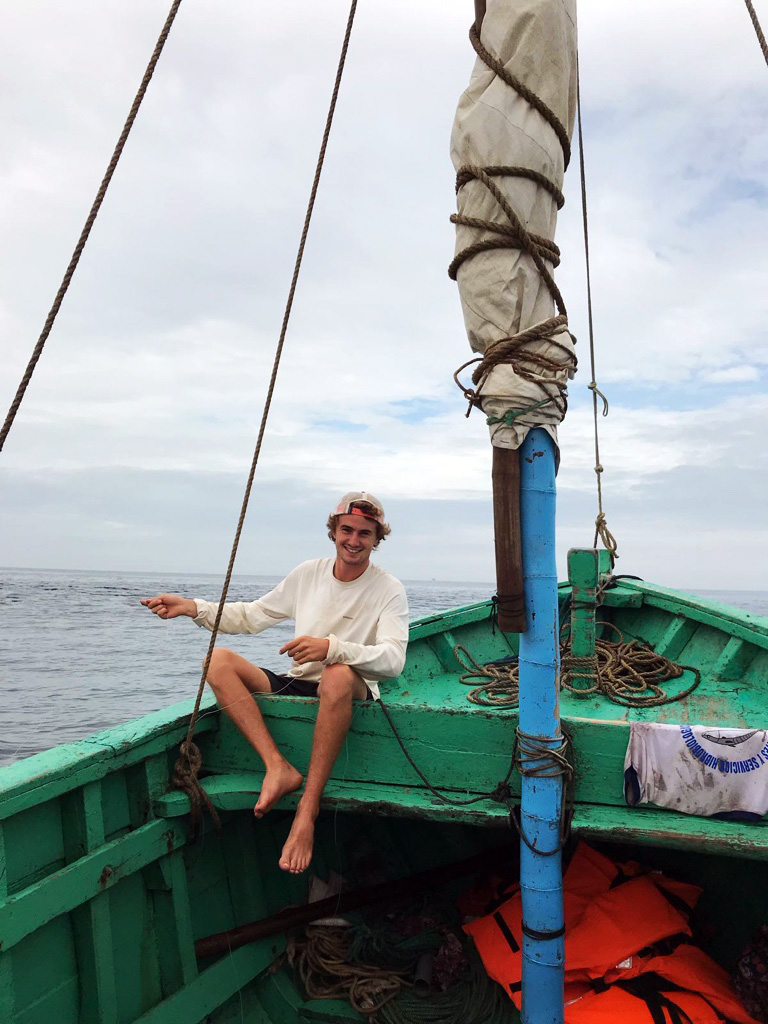 * My name is Camille, I am from England originally but currently live in Belfast, Northern Ireland. I am working with EcoSwell for 6 weeks as part of a University placement in an NGO and completing research. On Saturday the 9th of February, we set off from the Pier at 7 am on a cloudy Saturday morning. Our group was made up of India, Elliot, Ezra and me. We climbed onto Tulio’s fishing boat ‘El señor es mi pastor’ and sailed for about 30 minutes North West up the coast of Lobitos, past the old and largely disused oil rigs. The rigs are dotted sporadically across the horizon, having played a huge part in the history of Lobitos until the end of the 1960s, when the British were expelled from the town and the oil industry was nationalised.