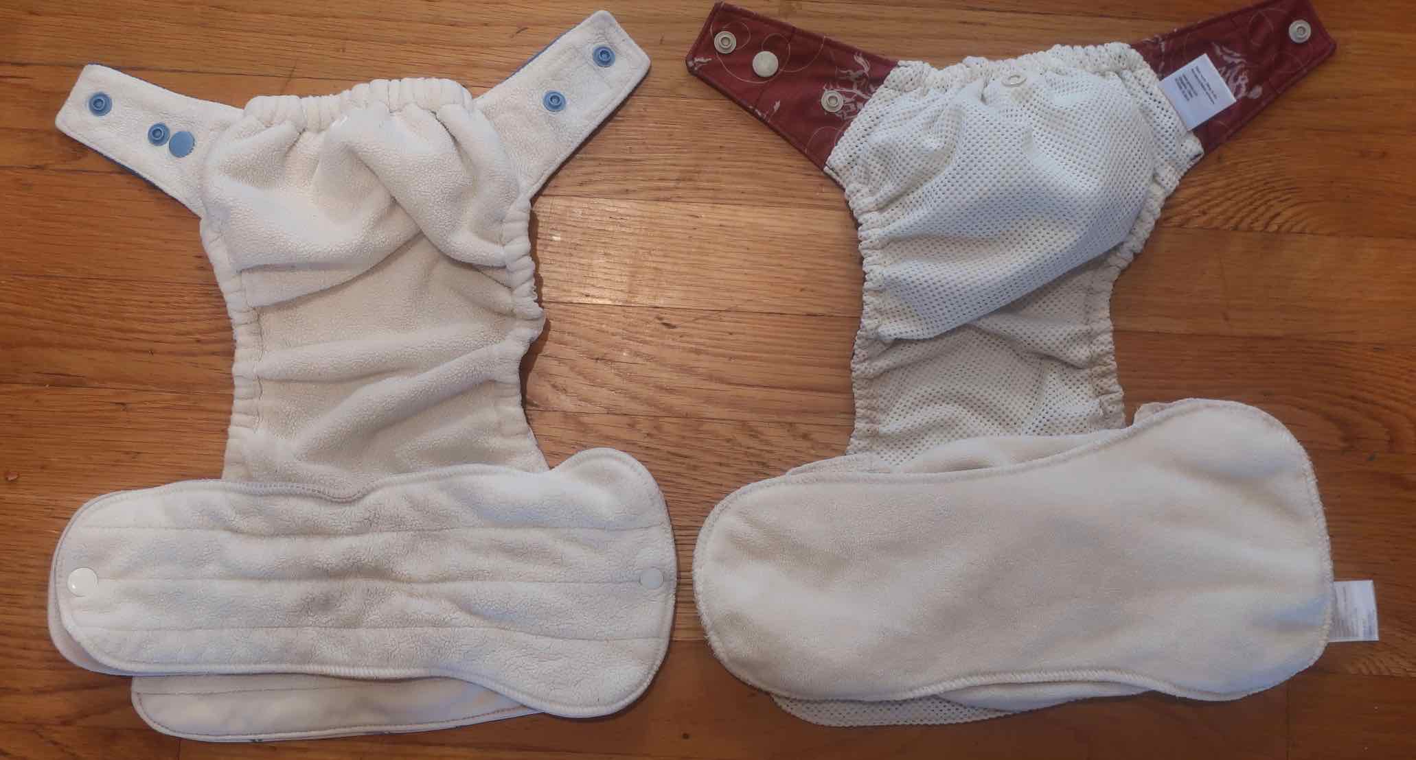 Cons: Require frequent changing, and, sadly, in the West we have lost this skill, so they are “Grandparent proof”All-in-one system: A diaper shell with inserts that slide in a pocket or clip in.