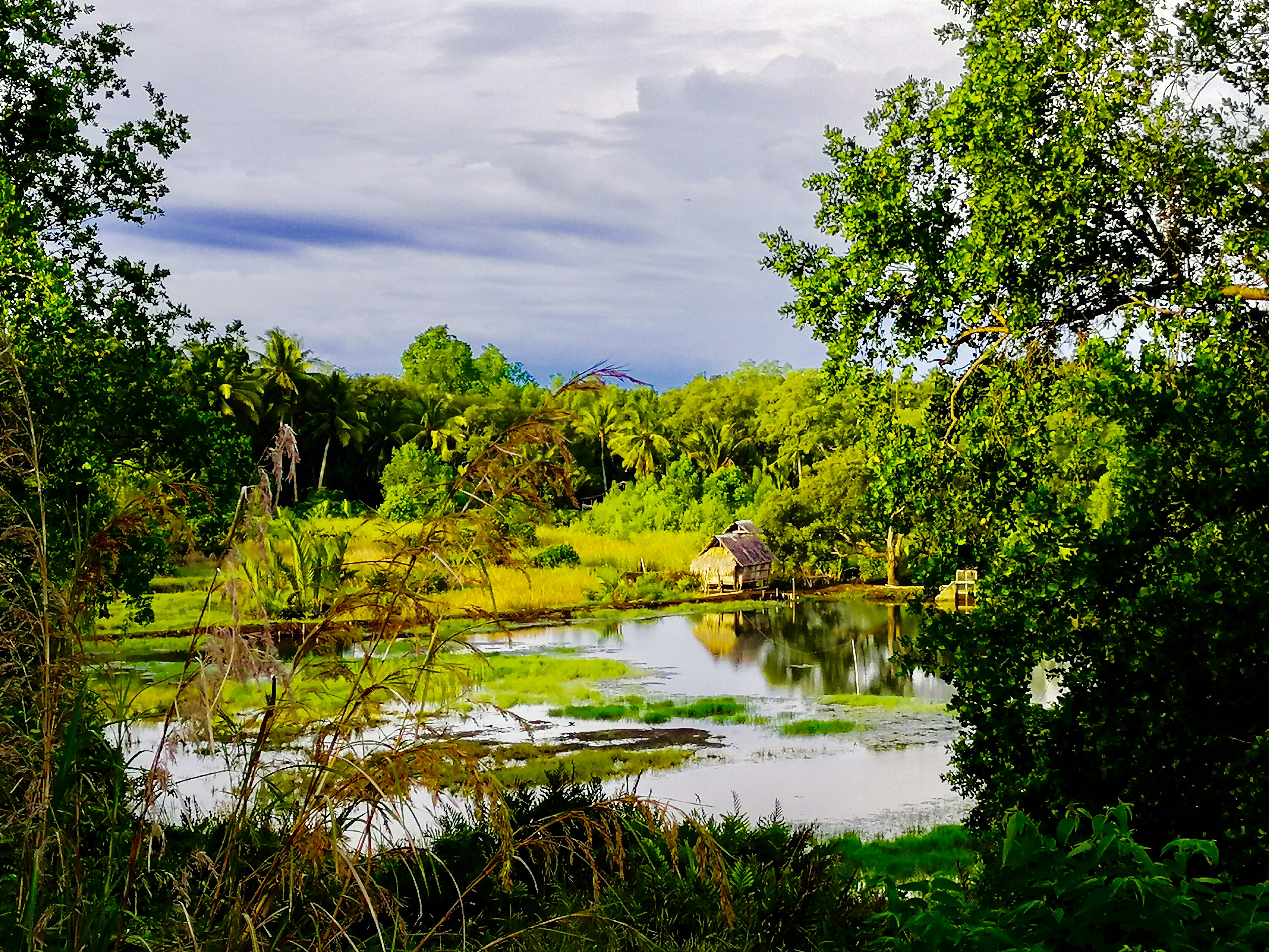 The atmosphere is amazing especially in the afternoon when the beautiful light with bright reddish sunshine and yellow makes visitors very impressed with the beautiful natural scenery of green and green leaves with a very clear water suspension bridge very satisfying and accompanied by pets such as Guda seen in the picture below is extraordinary