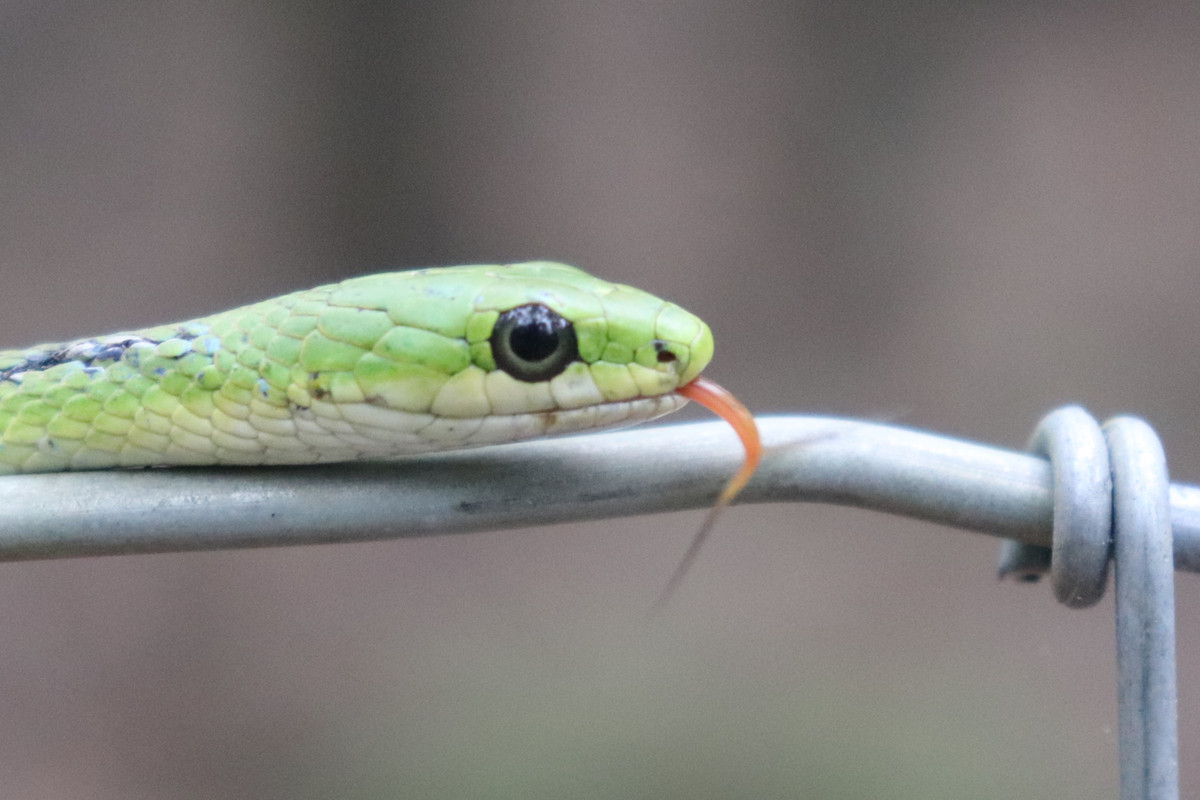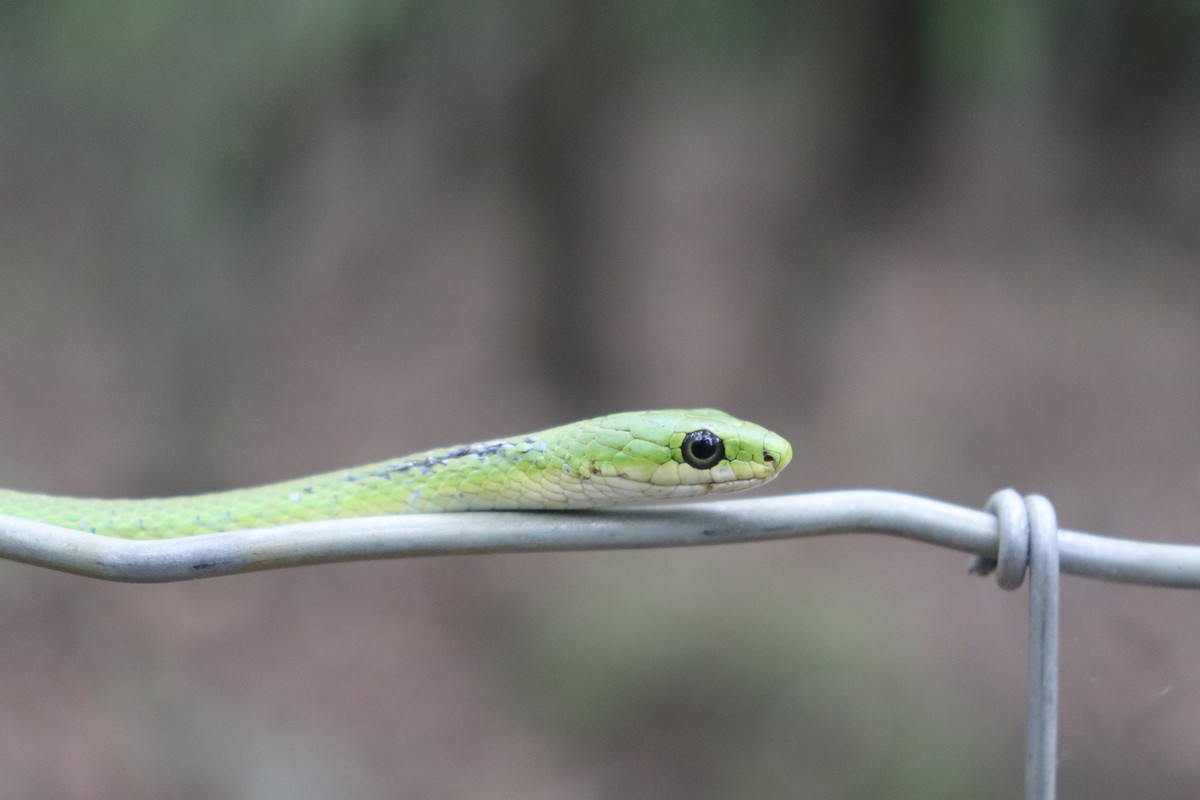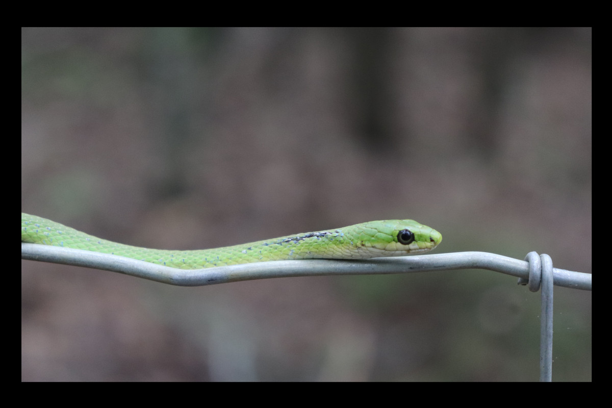 ROUGH GREEN SNAKE ON THE FENCE - PHOTOS