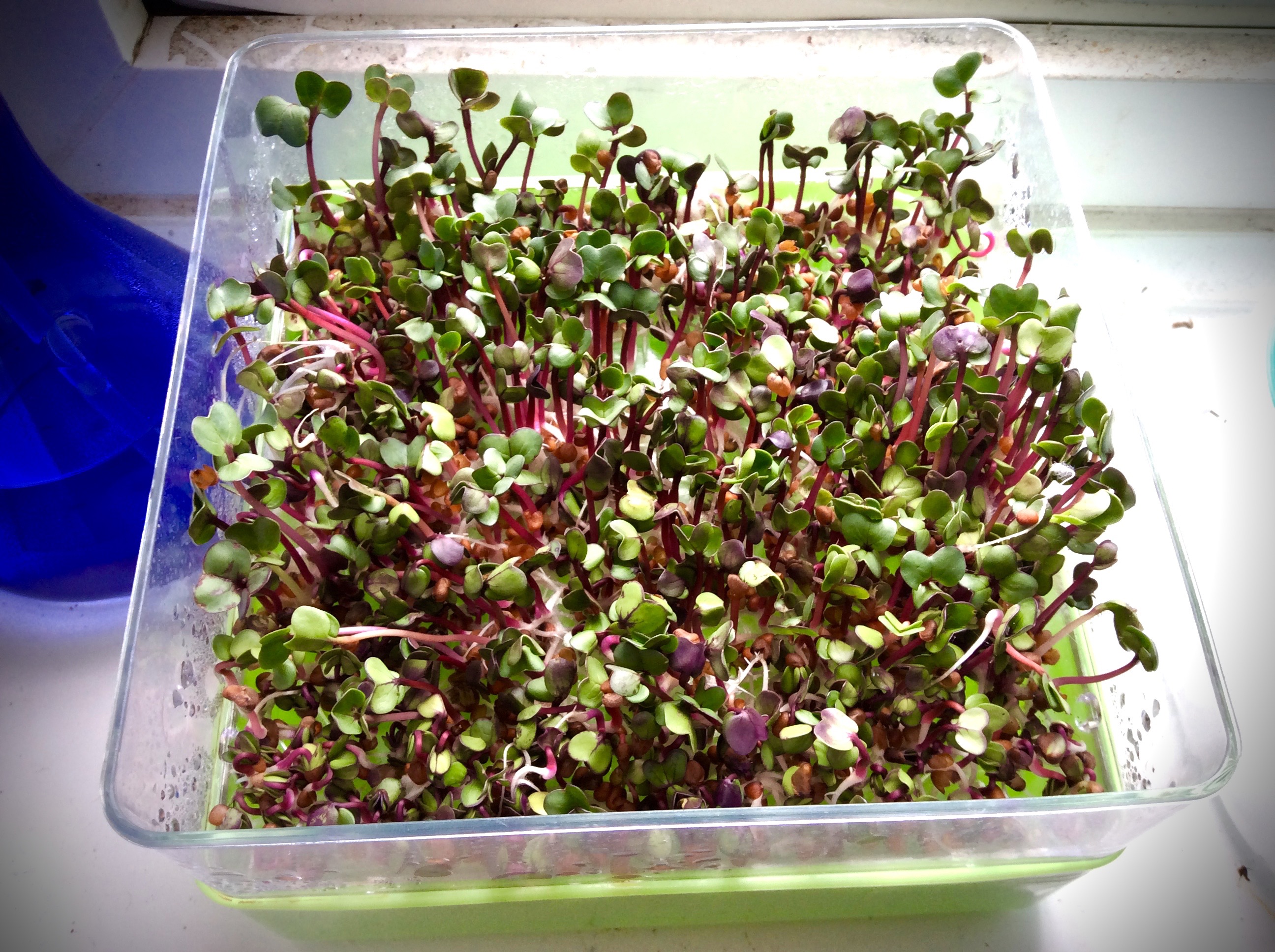 This purple kale for example grew in three days made me feel great! I munched on it exactly as you can see it here. No extras needed.