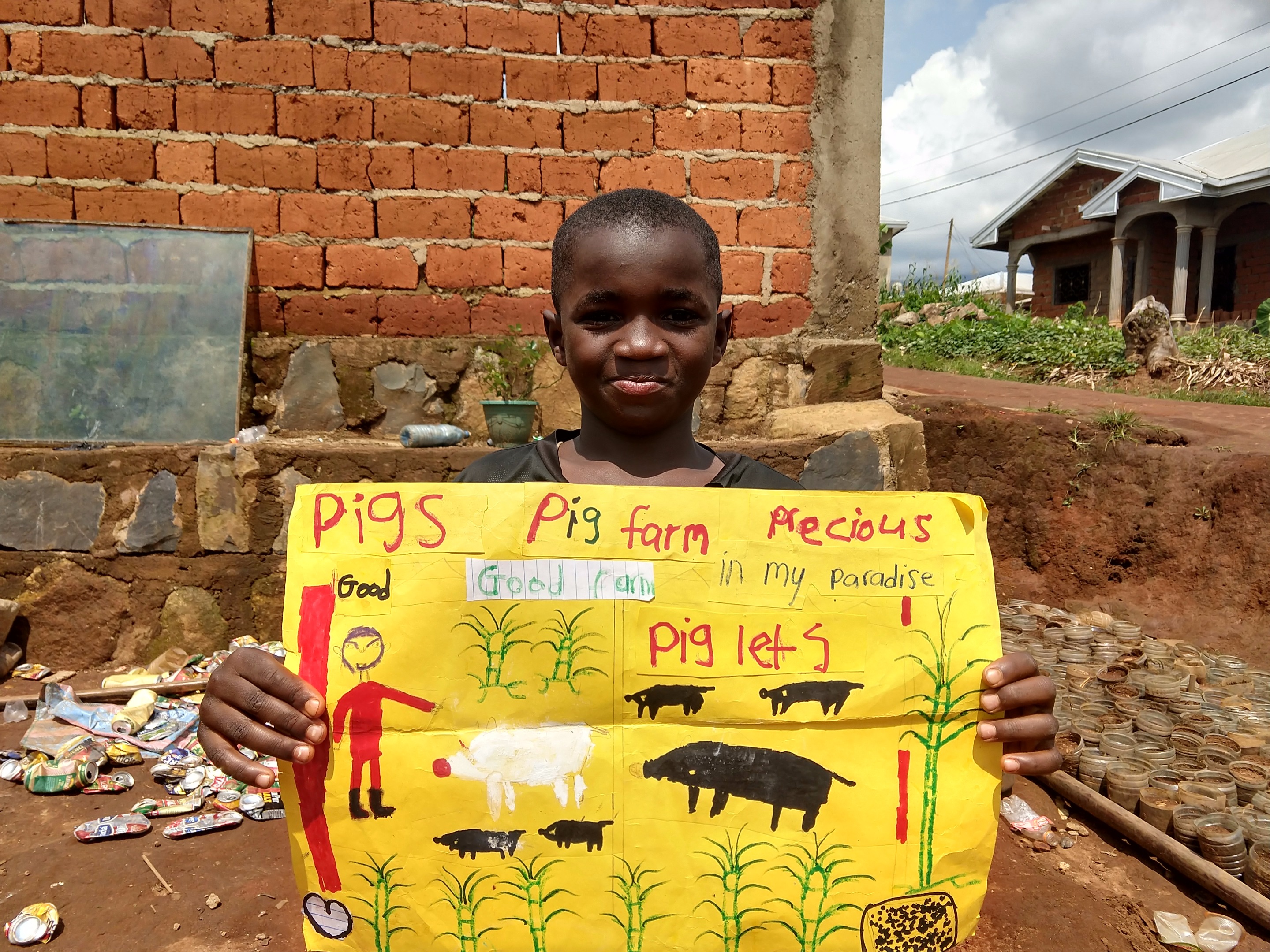 6 years old Precious spends a lot of time assisting his Father in their piggery that is surrounded by a sugar cane farm. This has made him to develop a lot of passion for pig farming and most especially for homesteading. In his Environmental Paradise, he dreams of rearing his own animals around a large homestead he will acquire.