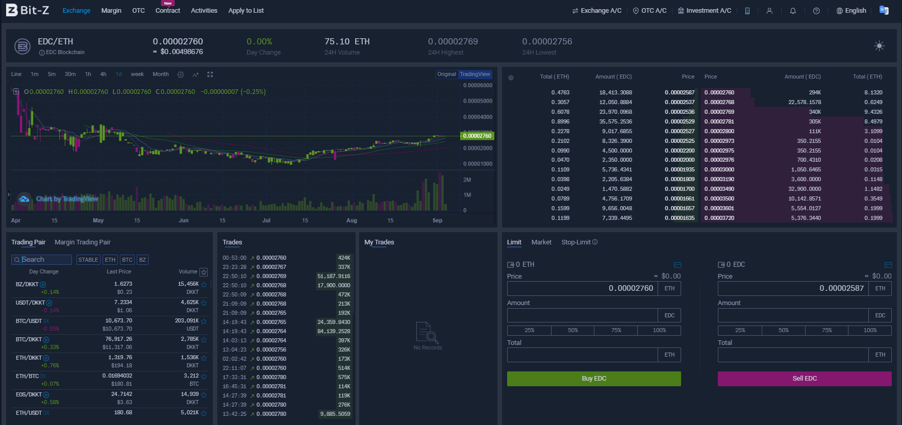 Покупка монеты EDC на бирже Bit-Z
