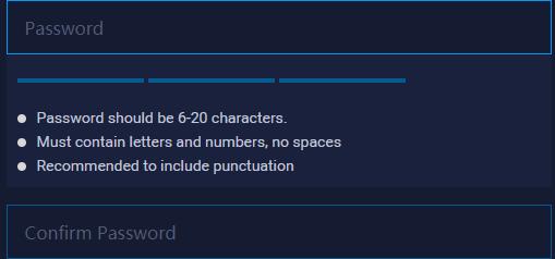 Обратите внимание на требования к паролю: от 6 до 20 символов, обязательные цифры и буквы, без пробелов и желательно включающий в себя знаки пунктуации.