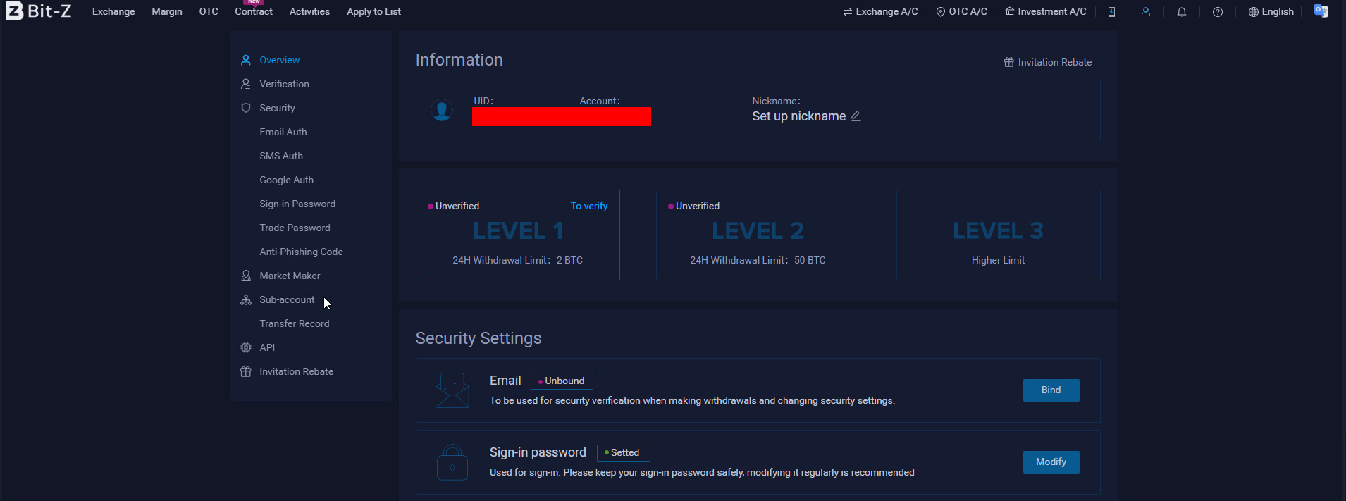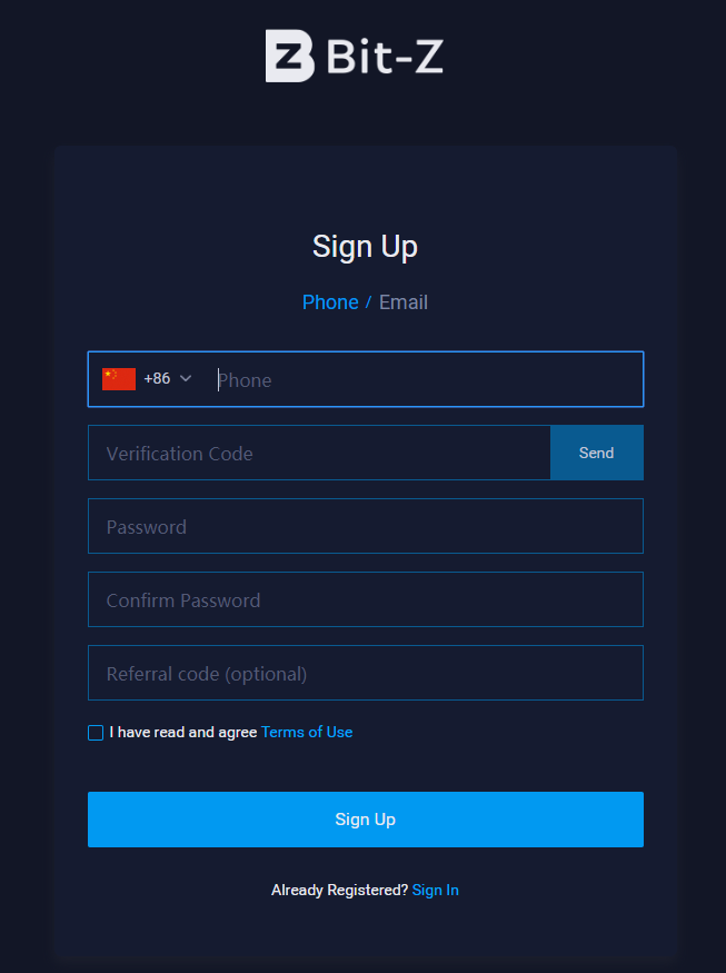 Регистрация на бирже Bit-Z
