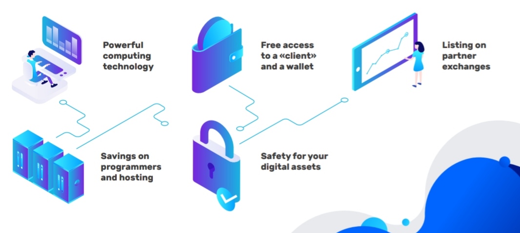 You don't need Power computing equipment for mining your tokens, also you don't need to buy hosting. Platform will do all things for you including programming.