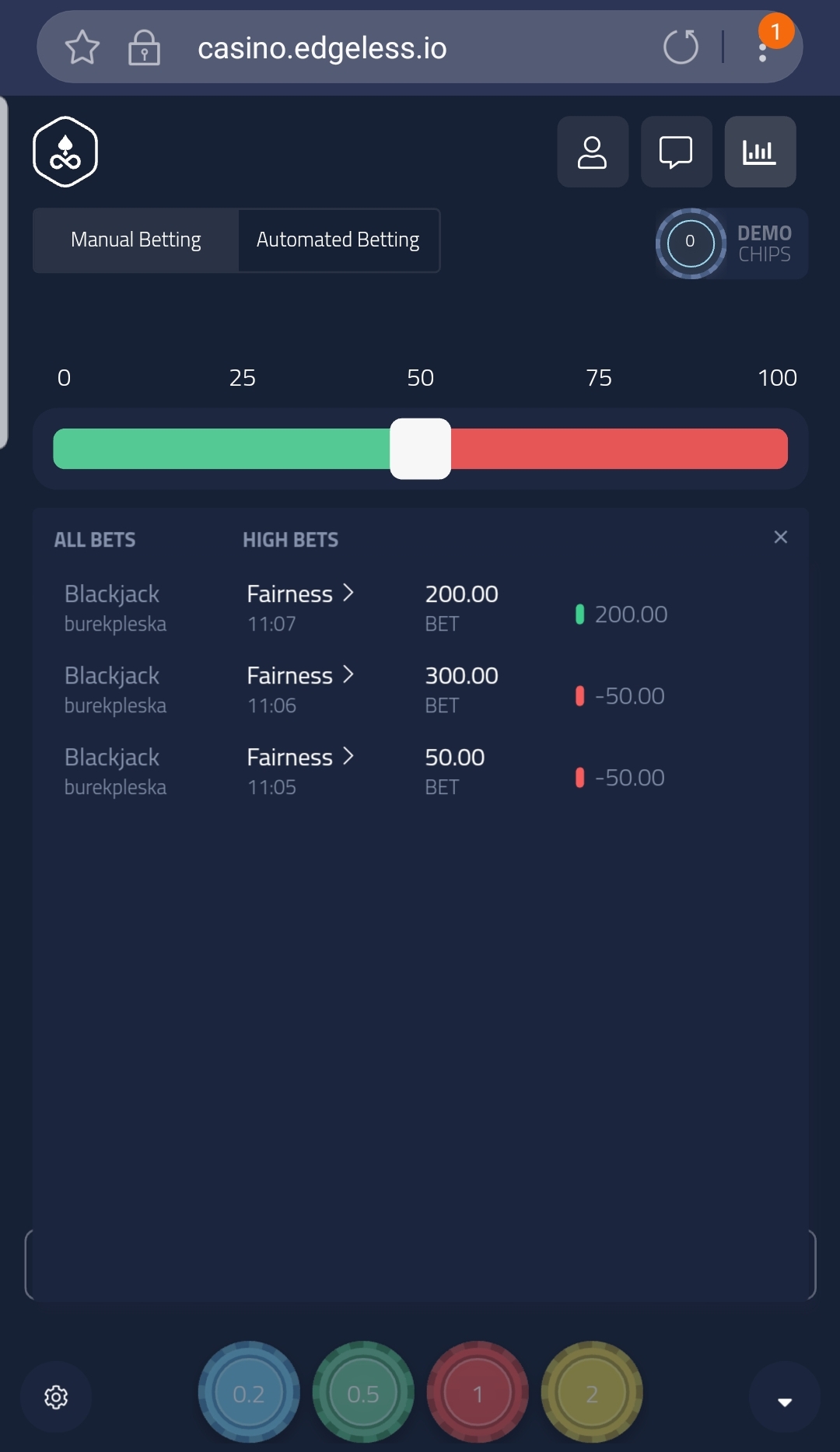 These deleted options were really handy for users who would have deployed diverse strategies such as Martingale and deprives users advantages of the openness of the architecture. Also, as the minimum you can bet is 0.2, 10 straight loses and you cannot use the Martingale strategy anymore. Also new players who would like to initially try the bets with very small Edges like 0.01 can no longer to this. This would prevent new players with small assets trying out the platform with real Edges.