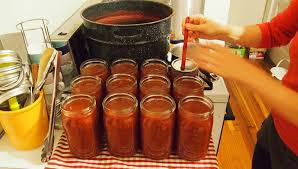 -Agregar la pulpa de tomate en los frascos de vidrio y tapar- Coloque los potes en una olla o caldero, cubrir con agua y hervir por una hora