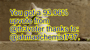 You got a 93.06% upvote from @th3voter thanks to: ahmadchemist737!