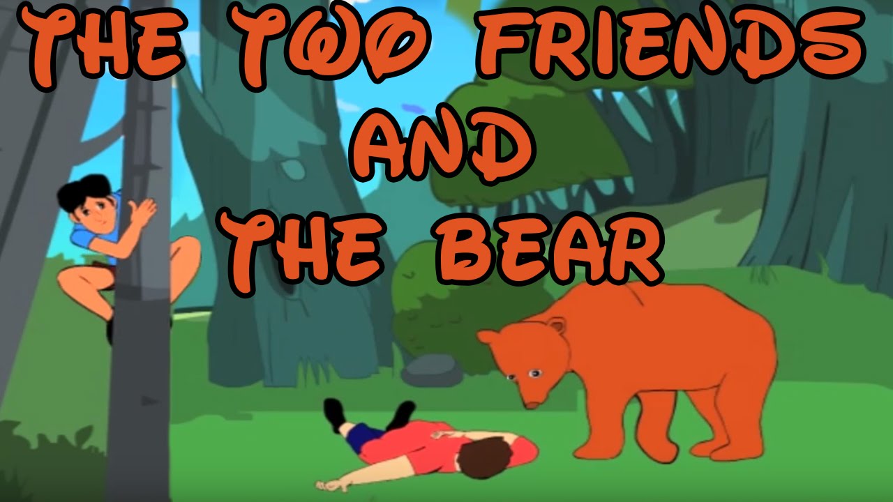 The bear came near the one who was lying on the ground. It smelt in his ears, and slowly left the place because the bears do not want to touch the dead creatures. After that, the friend on the tree came down and asked his friend that was on the ground, “Friend, what did the bear whisper into your ears?” The other friend replied, “Just now the bear advised me not to believe a false friend.”