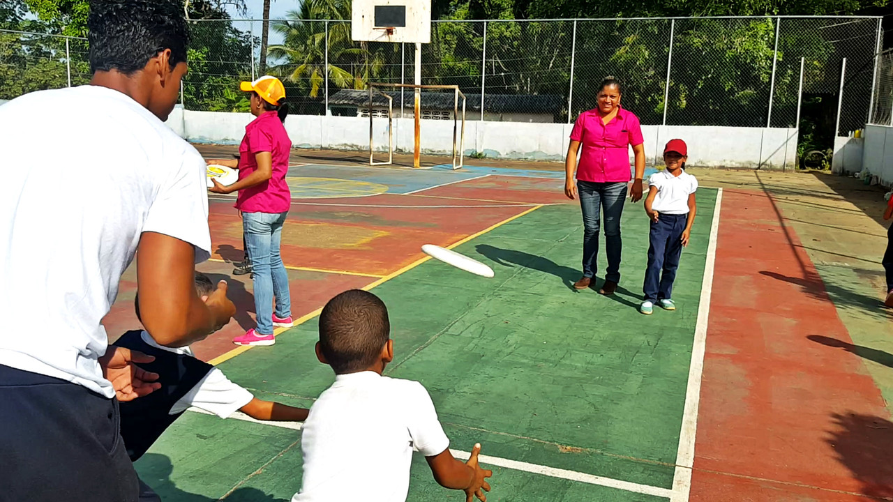 With the help of the teachers of each section, the activity was developed during 4 hours, in which we worked with children from Kindergarten through Sixth Grade divided into two groups. They were taught about the Ultimate Frisbee, about techniques to release the disc and most importantly about the Spirit of Play.