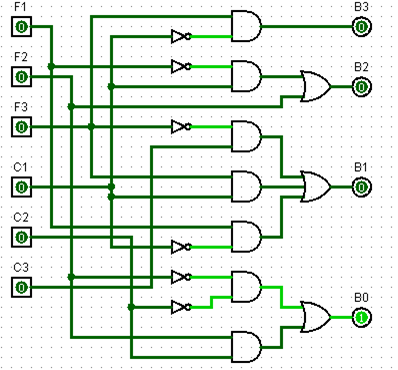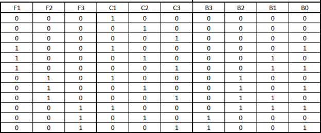 Where the numbers represent the current state of each column of the matrix and the extra flip flop that I have called Co. Which govern the behavior of the circuit input.