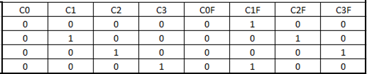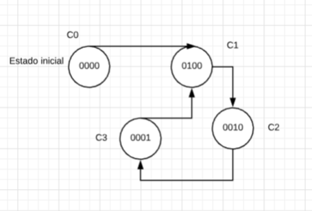 The three columns were connected to the output of three flip flops type D, these works as a future state of the same, a flip flop D was added (referred to as column zero (C0)) C1, C2 and C3 being the columns listed from 1 to 3 from left to right to start the state machine when each flip flop marks zero. In this way the three columns will be lit one by one.