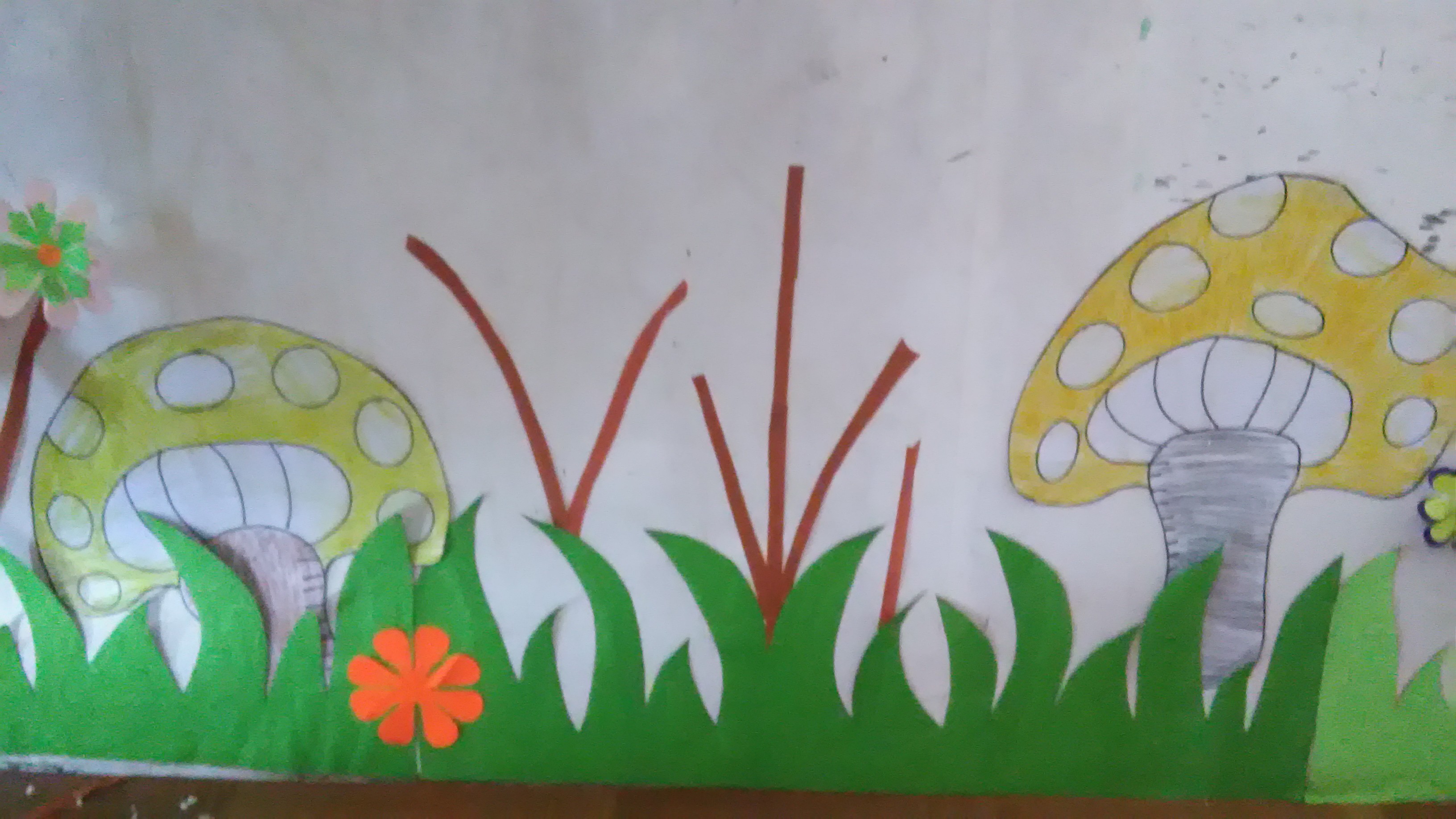 - Now its time for you to make something like a stem not steem..hehe. Then make grasses just cut something like a grass on a green or yellow green cartolina. And formed it to the spaces you want to filled up.