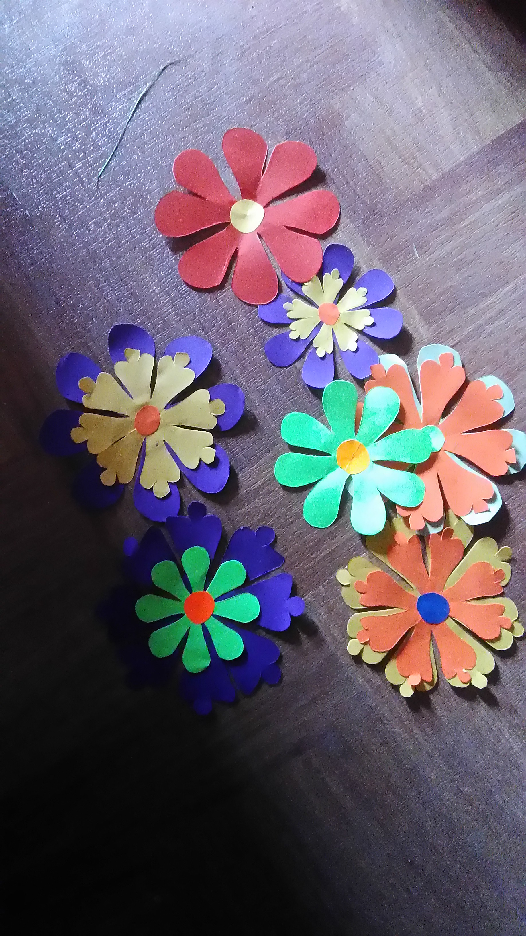 - Cut many flowers using art paper of neon paper in any color combination. Until you can form a flowers like this.