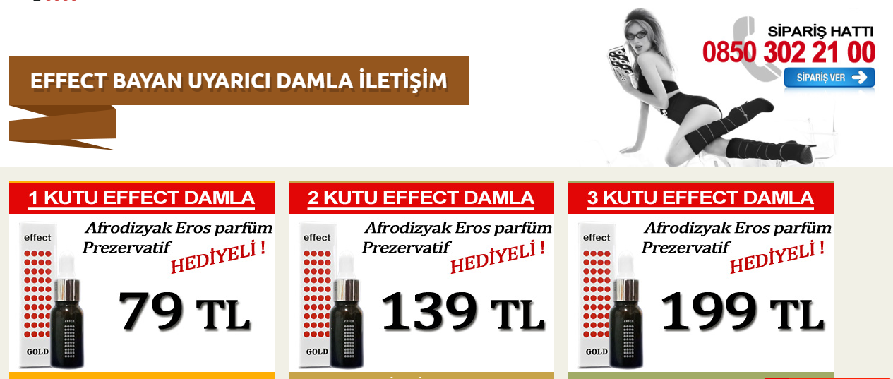 Effect Damla; Sadece Yetişkinler içindir. (+18) Kalp hastaları ve mide rahatsızlıkları olan kişiler kullanmamalıdır. Effect Damlayı 24 saatte 1 kereden fazla kullanmayınız. Çocukların erişemeyeceği yerlerde saklanmanlıdır.Doğal cinsel libido arttırmaya yardımcıdır. Effect Gold bayan uyarıcı damla kadın cinsel dürtüsü geliştirmek için doğal bitki özlerinden ve afrodizyaklardan formule edilmiştir. Tamamen doğal hiç bir kimyasal bulunmayan bayan uyarıcı damladır.