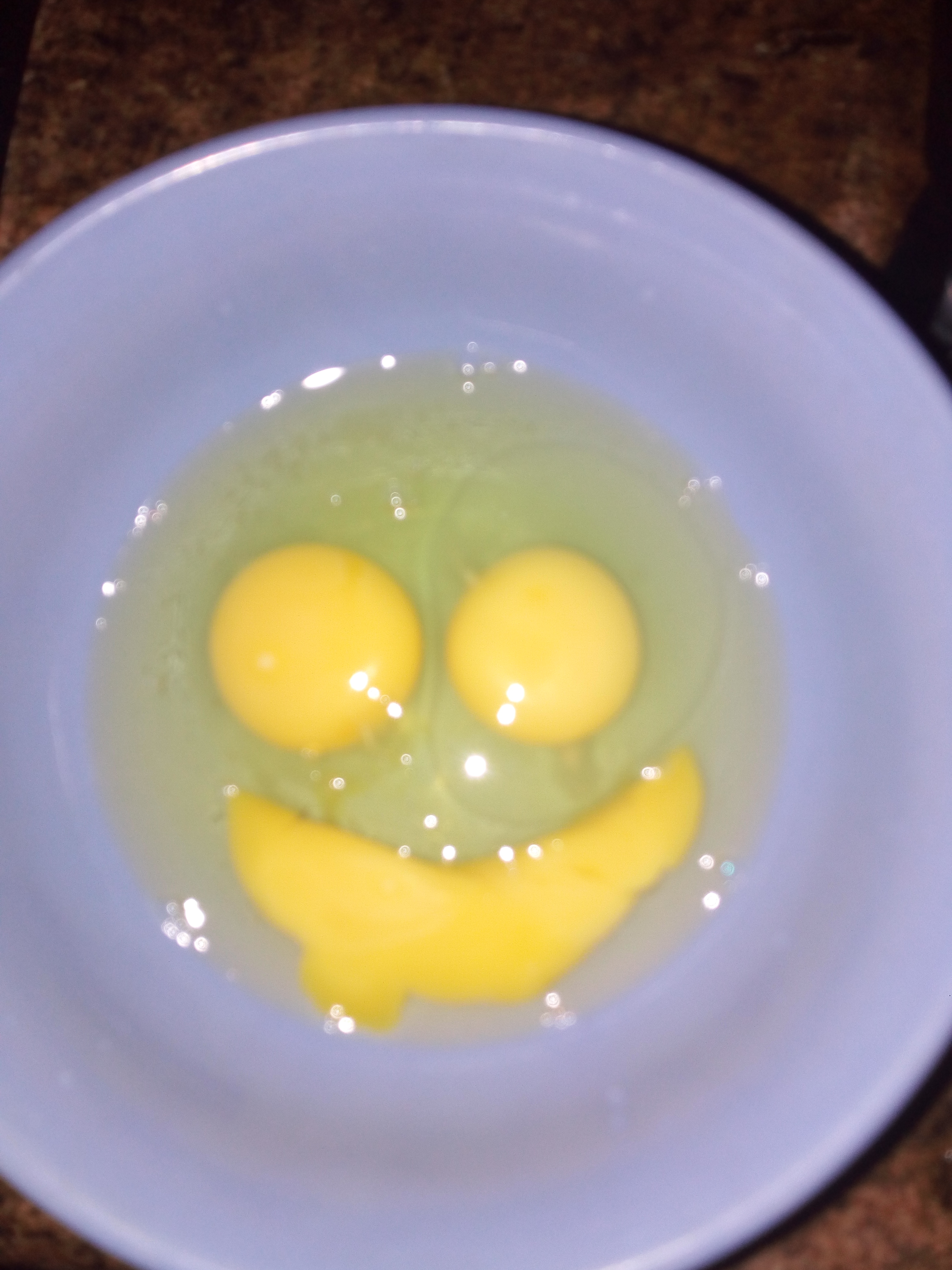 Hello People of Steemit, I got up late this morning and decided to have scrambled eggs for breakfast and after cracking some eggs into a bowl I noticed that my eggs made a smiley face in the as you can see images.