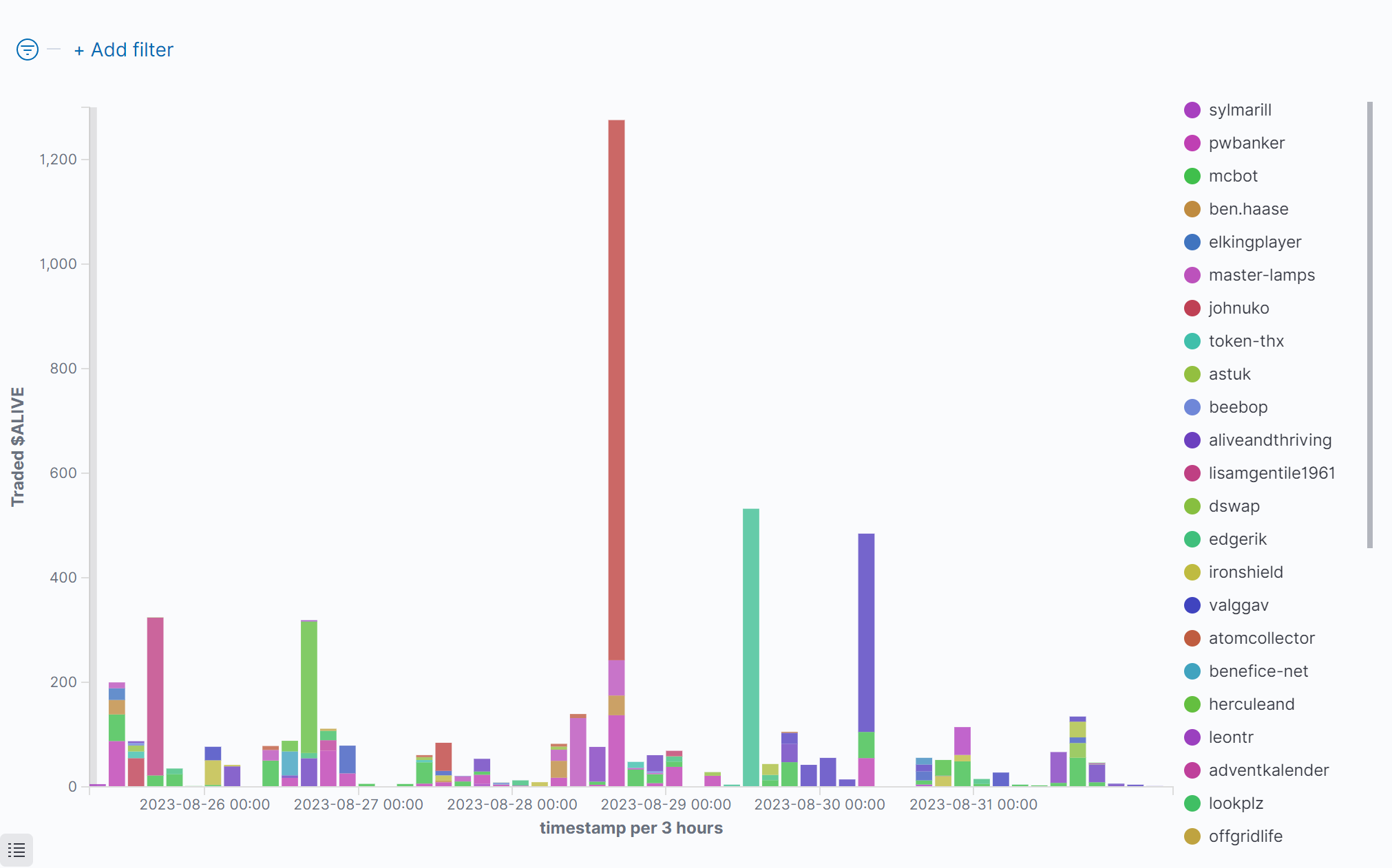 | Buyer(Descending) | Sold $HIVE | % Sold $HIVE | Bought $ALIVE | Avg. Price | Number of Trades |