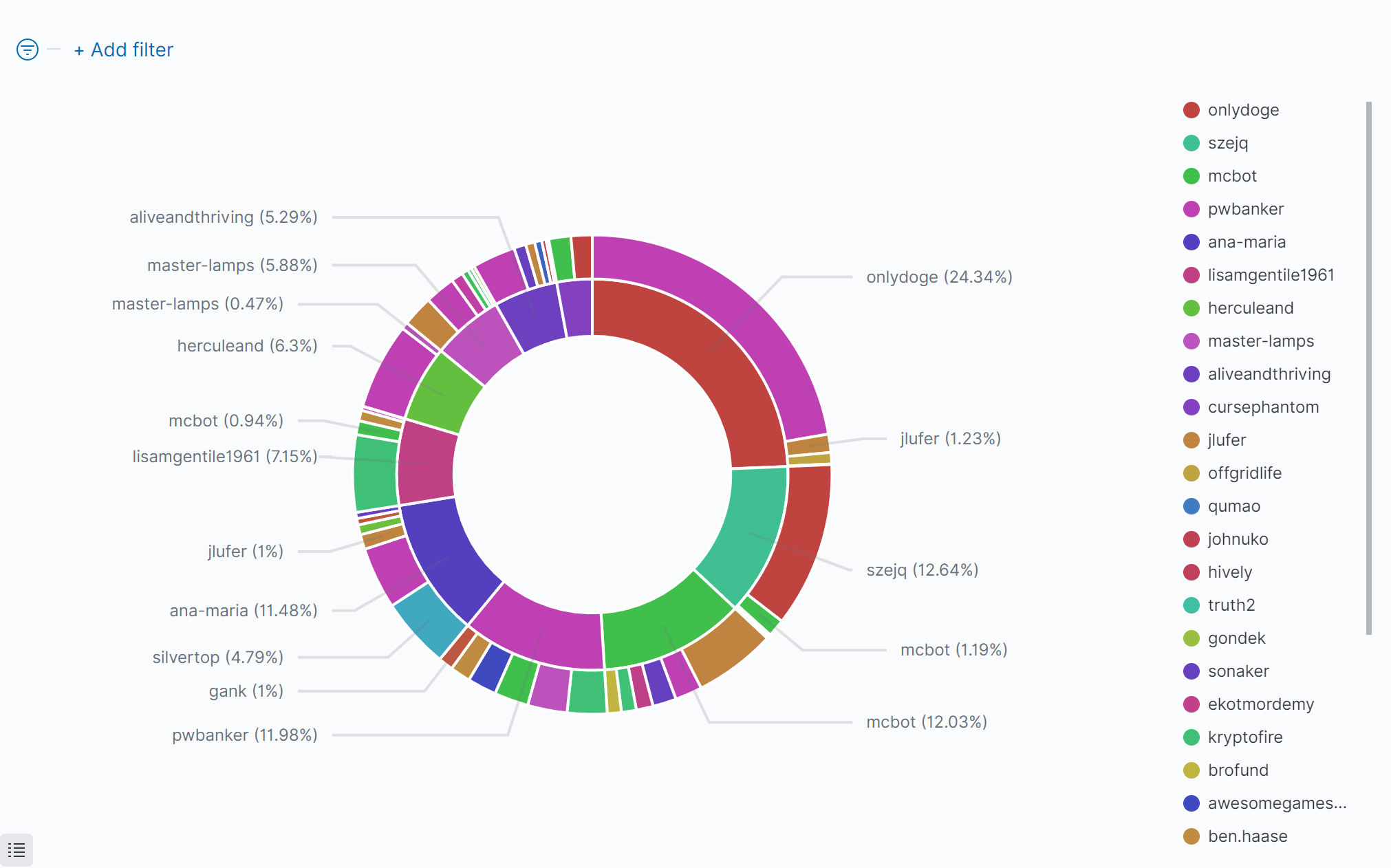 The inside of the circle shows the buyers of $ALIVE, ordered by $HIVE they have spent. The outside shows the recipients of that $HIVE (sellers of $ALIVE):