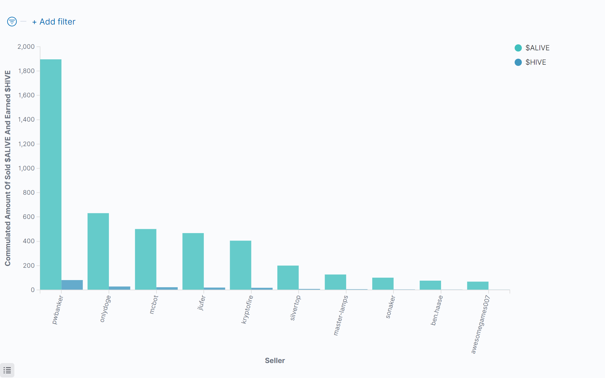 | Seller(Descending) | Earned $HIVE | % Earned $HIVE | Sold $ALIVE | Avg. Price | Number of Trades |