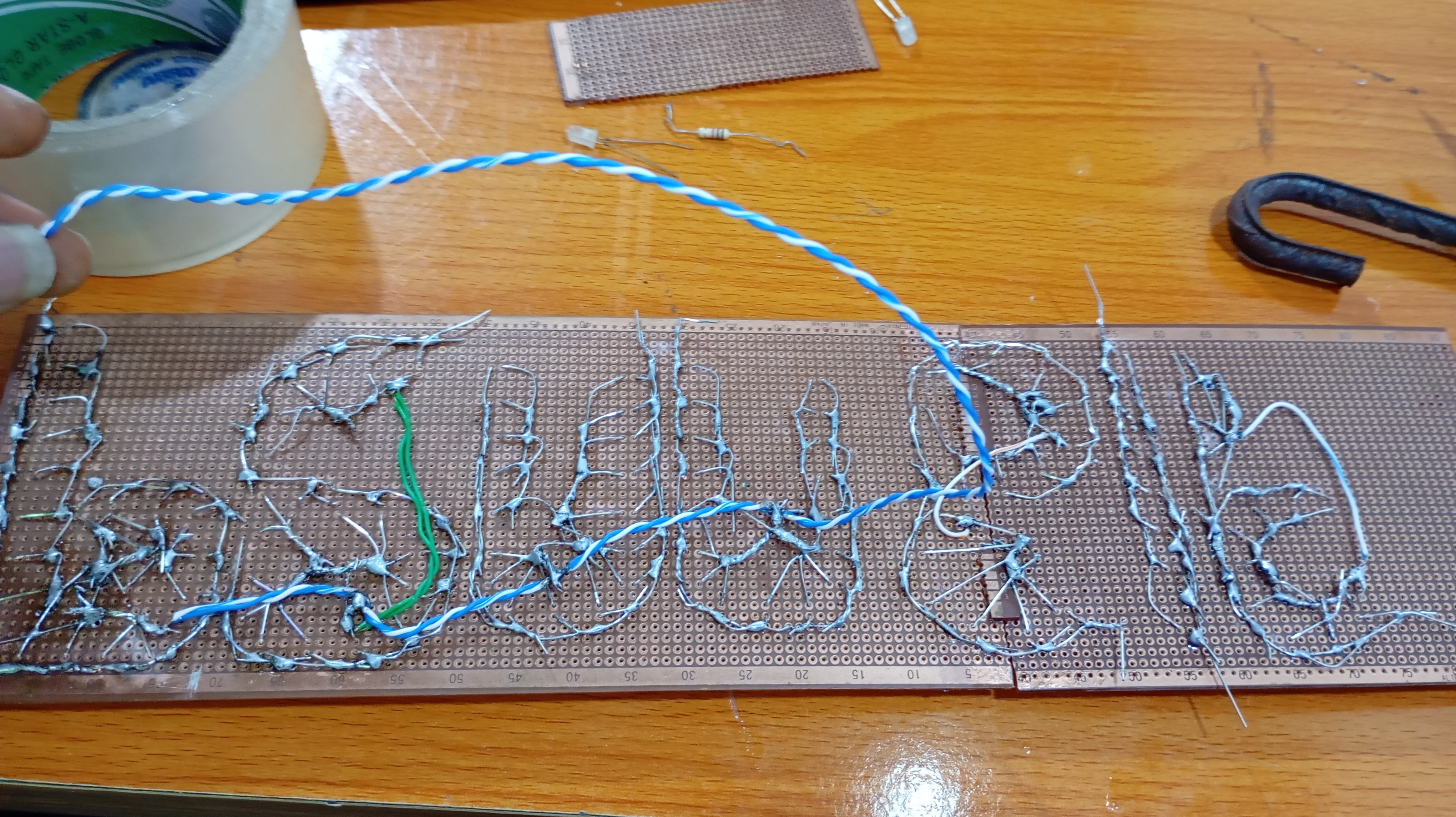 I also joined two veroboards together with iron gum since the characters I would be using are a little bit longer than the normal vero board size.