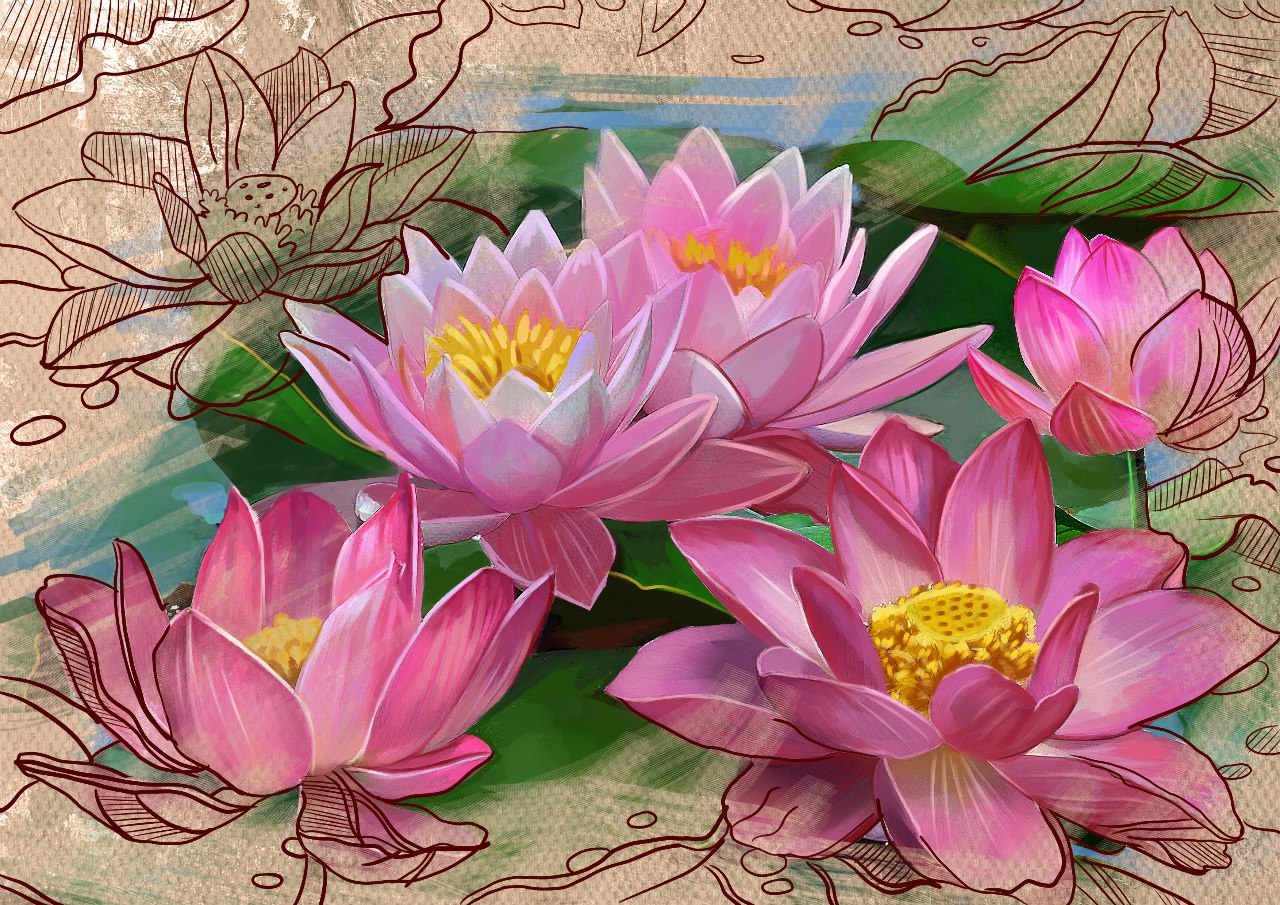 Far Eastern lotuses (illustration for a postcard) SAI