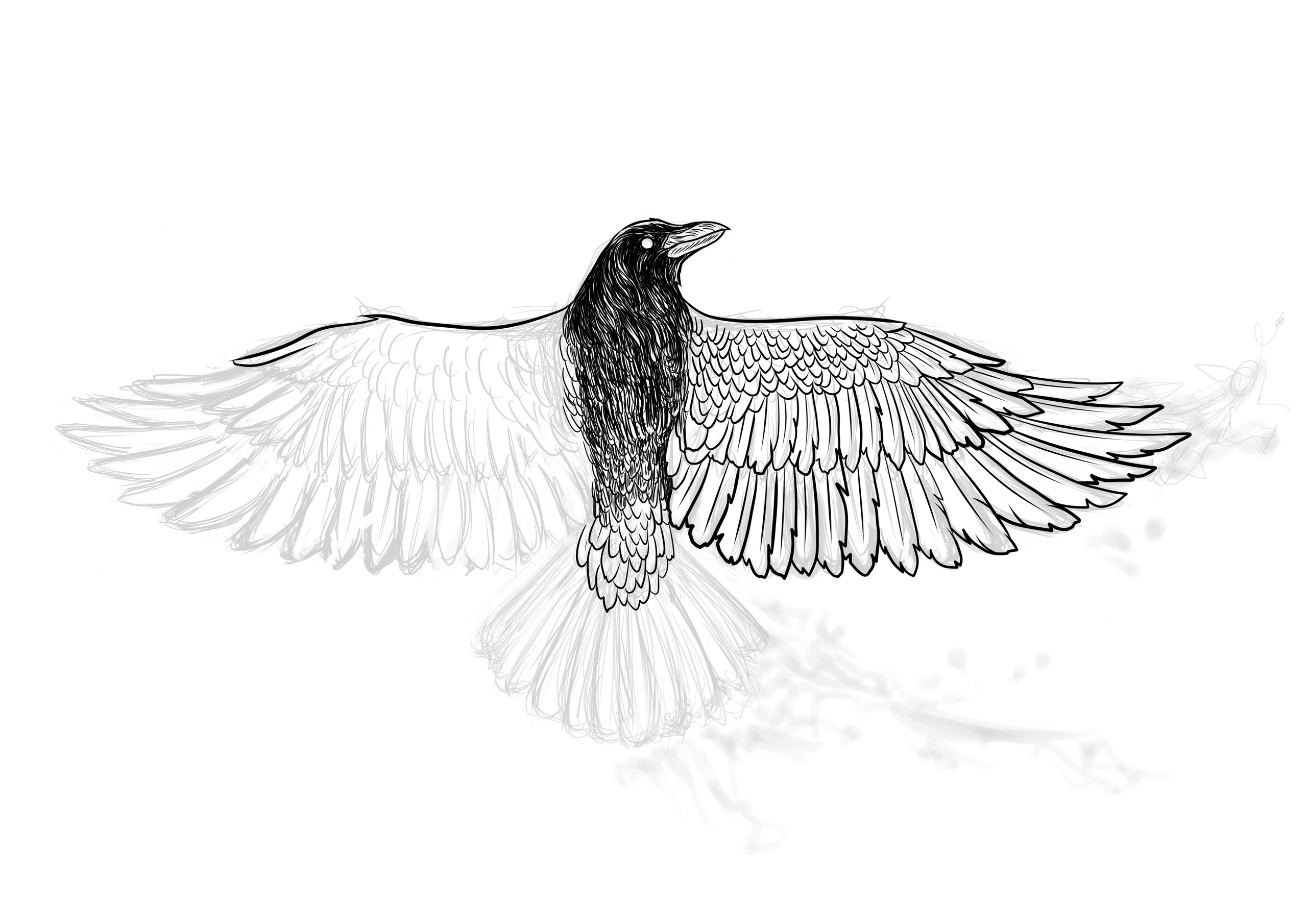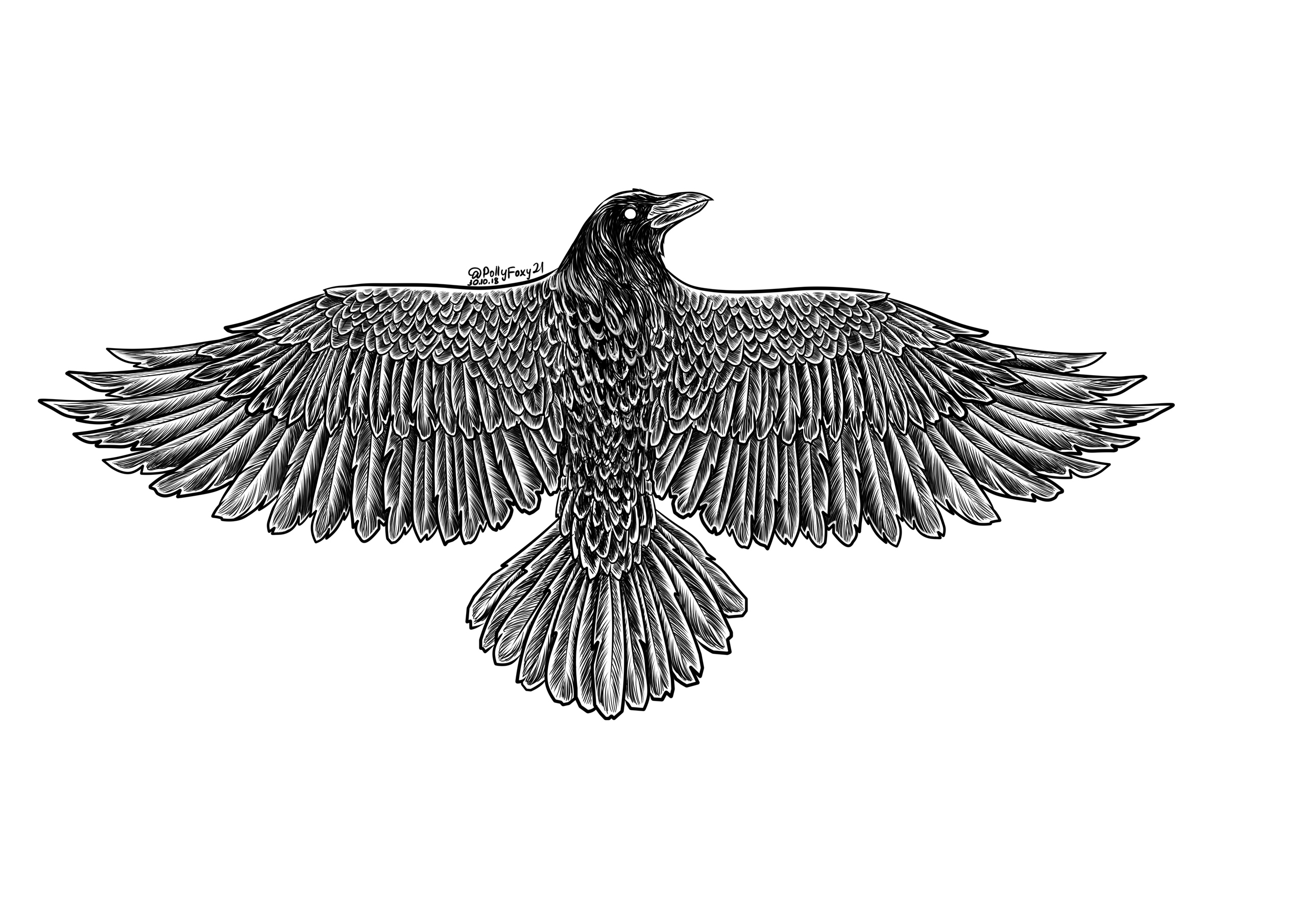 Beautiful raven, @miss.dara ! The pose is beautifully done, there's an allusion to a cross, and I love the detailing and inking of the feathers and wings very much ! The splash of black smokes at the end gives the picture a very gothic finish <3