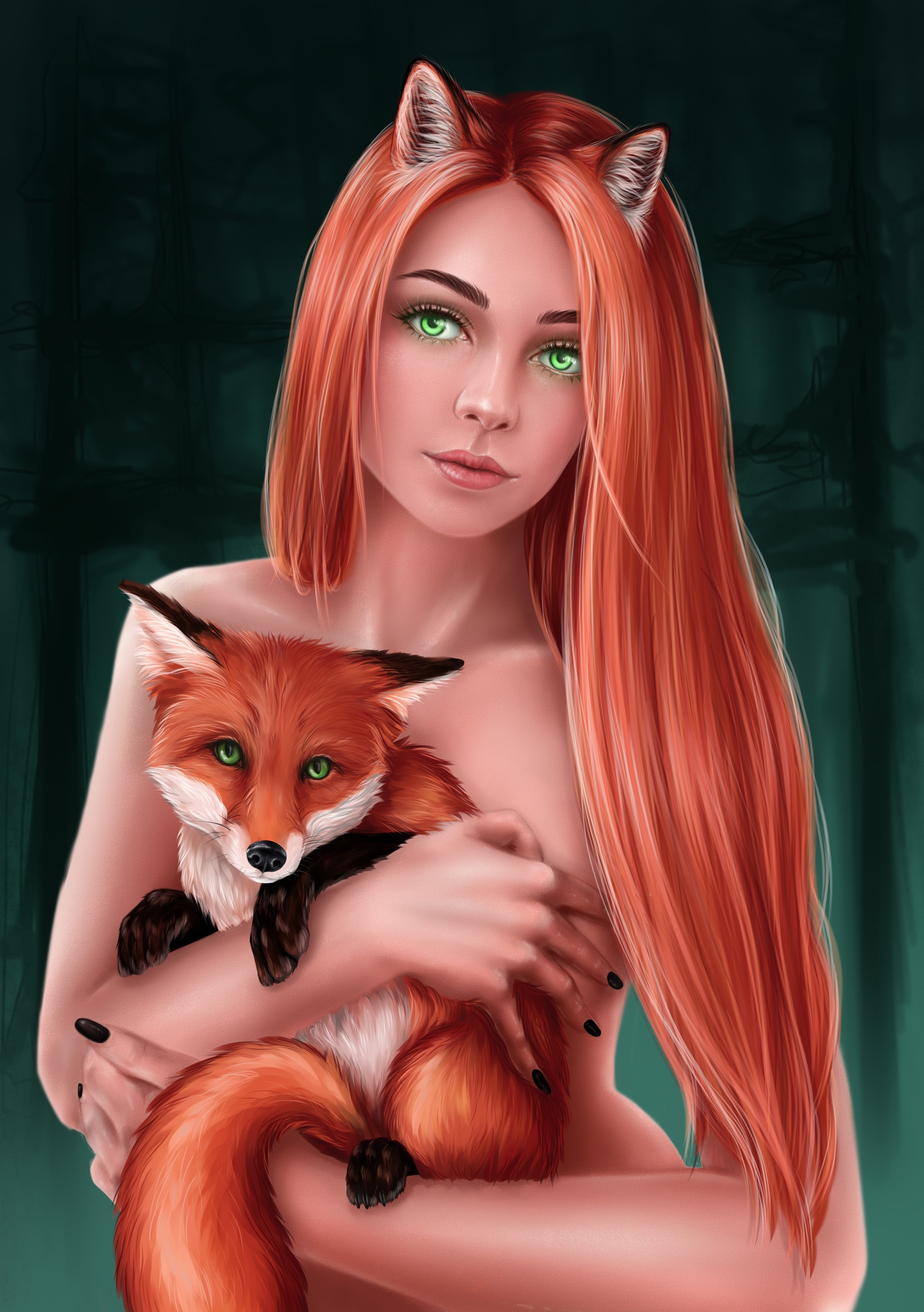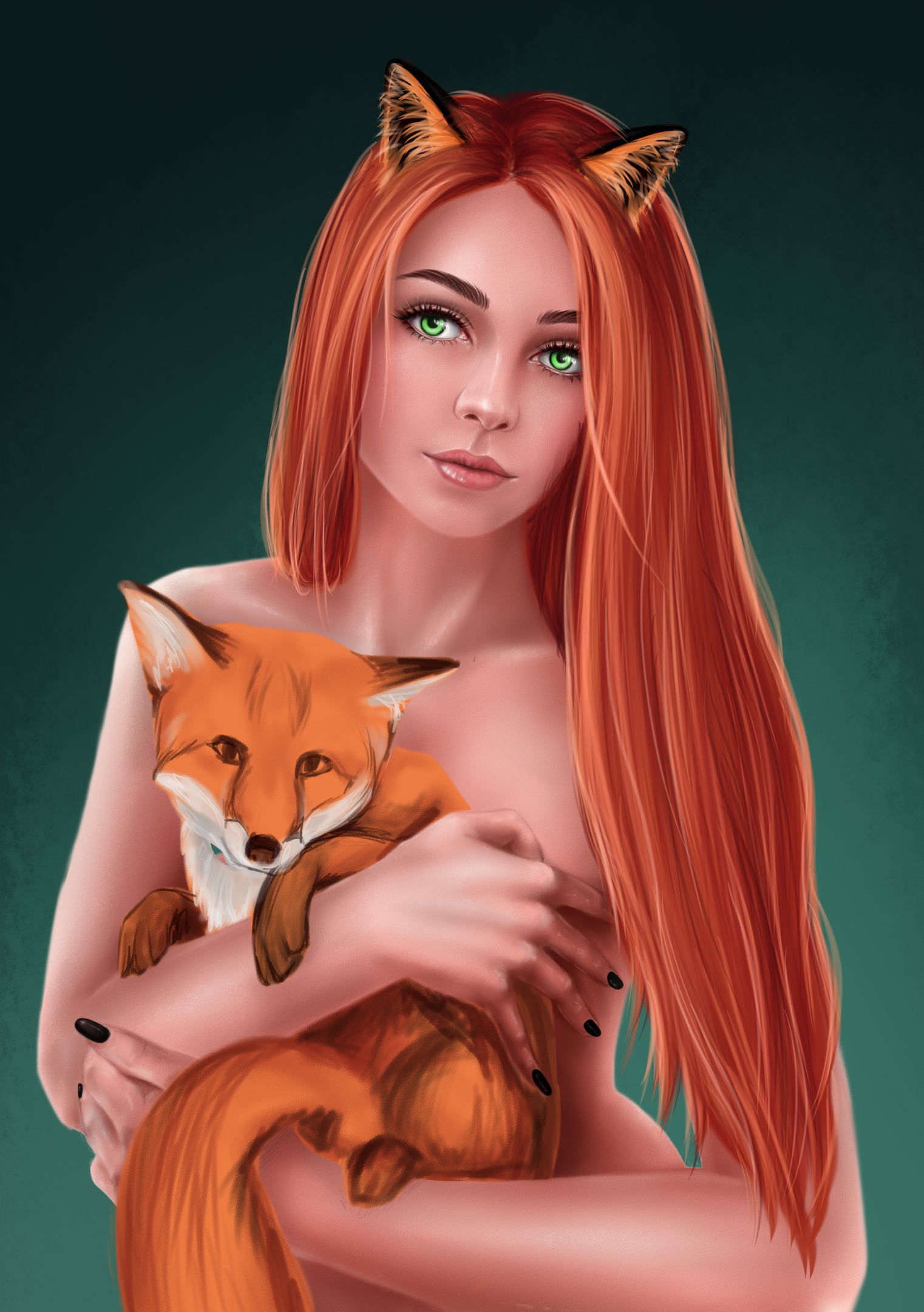 Hello friends ! I thought for a long time what to draw, and yet decided to draw a self-portrait, myself with a cute little fox! I often say that I look like a fox, so I drew myself in this manner!