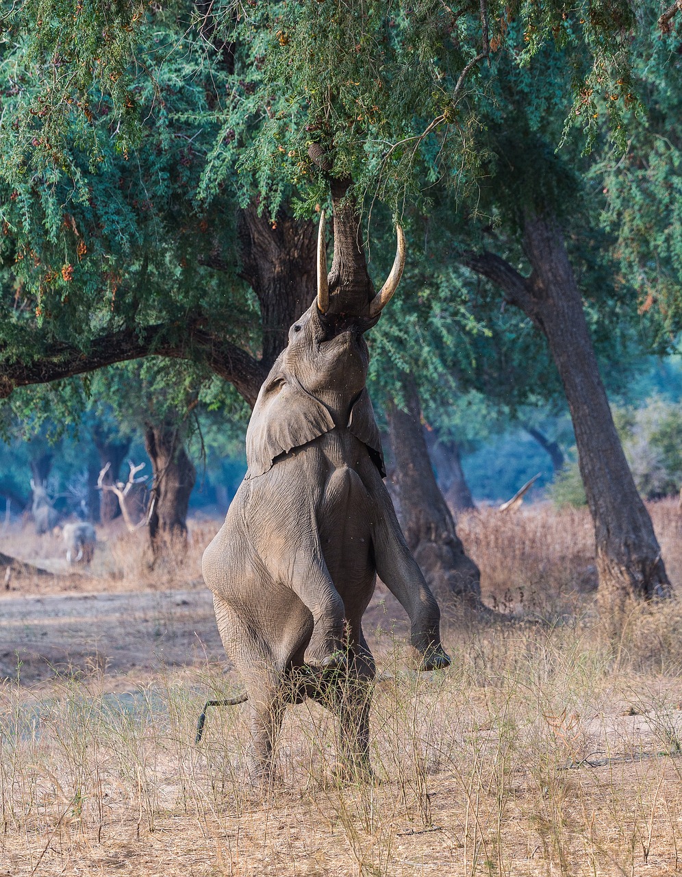 This animal is one of the animals that has a large body posture and it is an African elephant and is currently looking for food at the top of a tree like this.