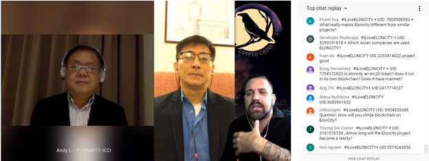 Eloncity đã tổ chức các buổi AMA với các đơn vị sau: KBIT ( vào 26/6 ), Crypto Crow ( vào 11/7), Crypto Love ( 20/7). Trong các buổi AMA, có một số các ý sau mà mọi người thường đặt câu hỏi về dự án Eloncity: