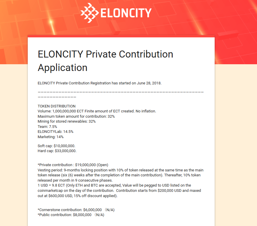 Private sale registration already started. $19M worth ECTwill be available for the private contribution.