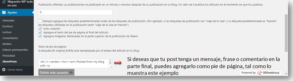 Configurando la cuenta WP para adaptarla y personalizarla de acuerdo a Steemit